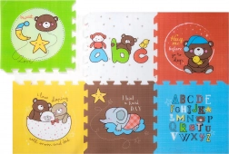 A nagyméretű puzzle elemek kedves állatillusztrációi és az ábécé (különleges ékezetes jelek nélkül) fejlesztik a képzelőerőt és támogatják a korai tanulást. A szőnyeg karbantartása egyszerű – elég nedves ruhával áttörölni. Az elemek egyoldalasak; az alsó oldalon előforduló gyártási egyenetlenségek nem befolyásolják a funkciót.