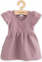 A könnyű New Baby muszlin gyerekruha levendula színben ideális a nyárra. A-vonalú szabással, rövid ujjal és ráncolt szoknyarésszel rendelkezik, ami bájos megjelenést kölcsönöz. Az elülső gombolás megkönnyíti az öltöztetést. A kiváló minőségű, 100% pamut muszlinból készült ruha puha, légáteresztő és kényelmes viselet, OEKO-TEX Standard 100 tanúsítvánnyal.