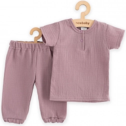 A muszlin az egyik leglégáteresztőbb és legpuhább szövet, gyakori mosásnak ellenáll, két vékony rétegből áll, ezért nem átlátszó, nincs szükség bélésre. Ebben a könnyű és levegős szettben a baba kényelmesen és egyben csinosan érzi magát.