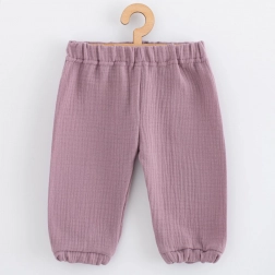 Stílusos és praktikus 2 részes babaszett a NEW BABY márkától, lágy levendula színben. Rövid ujjú pólót és nadrágot tartalmaz minőségi muszlinból. Az anyag lélegző, puha és kellemes a baba bőréhez. A póló pattentekkel a nyakrésznél könnyíti az öltöztetést, a nadrág kényelmes gumírozással a deréknál és a szárak végén rendelkezik, amely nem szorít. Ideális tavaszi és nyári napokra.