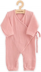 Ez a rózsaszín New Baby muszlin overál remek választás mindennapi viselethez és alváshoz is. Az áthajtós zárás megkönnyíti a baba öltöztetését, míg a lábak közötti pattentek felgyorsítják a pelenkázást. A muszlin rendkívül könnyű, puha és légáteresztő, segít a hőszabályozásban és csökkenti a túlmelegedés kockázatát.