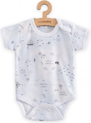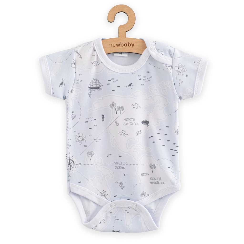 Kényelmes és stílusos rövid ujjú újszülött body New Baby For Babies ocean motívummal, 100% pamutból készítve. Teljes felületű, játékos minta, könnyű patentos zárás a vállon és a lábak között, valamint OEKO-TEX STANDARD 100 tanúsítvány a biztonságért és a kényelméért az érzékeny bababőrnek.