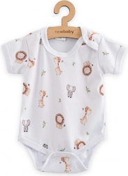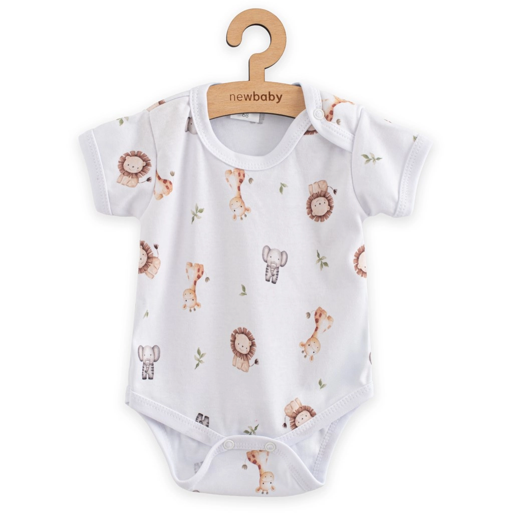 Kényelmes, rövid ujjú újszülött body New Baby For Babies márkától szafari motívummal, 100% pamutból. A vállon és a lábak között található praktikus patentos záródásnak köszönhetően könnyű az öltöztetés és a pelenkázás. A puha és légáteresztő anyag gyengéden kényezteti az érzékeny bababőrt, és gondoskodik róla, hogy a hát mindig fedve maradjon mozgás közben. Az OEKO-TEX STANDARD 100 tanúsítvány garantálja az anyagok biztonságát.