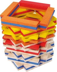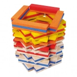 A gyerekek a darabok egymásra helyezése és kiegyensúlyozása közben gyakorolják a kéz-szem koordinációt, a türelmet és a térérzékelést.