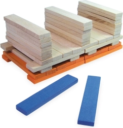 A szett 100 masszív, sima lapocskát tartalmaz natúr és élénk színekben – ideális tornyokhoz, házikókhoz és egyedi szerkezetekhez.