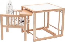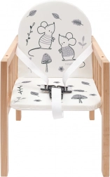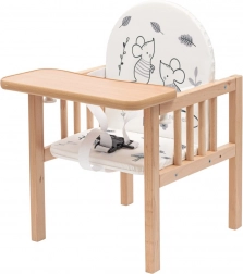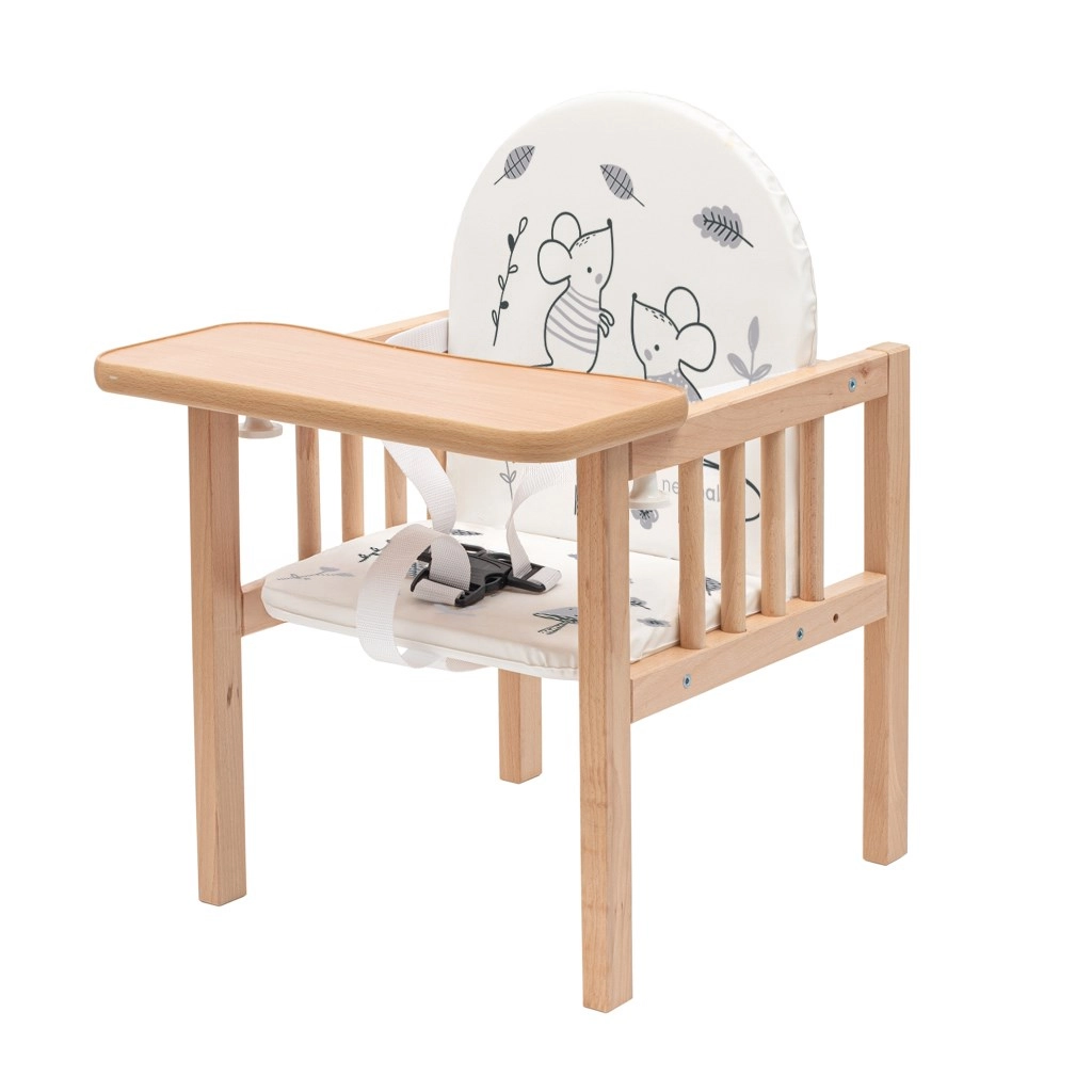 Praktikus és biztonságos 2 az 1-ben NEW BABY Jerry gyerek etetőszék masszív bükkfából. Könnyen átalakítható különálló asztallá és székké, kényelmes, gyerekmintás párnázattal és könnyen tisztítható tálcával. A biztonságról a 3 pontos biztonsági öv és a stabil szerkezet gondoskodik, hosszú élettartammal. Ideális etetéshez, játékhoz és rajzoláshoz.