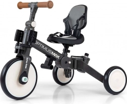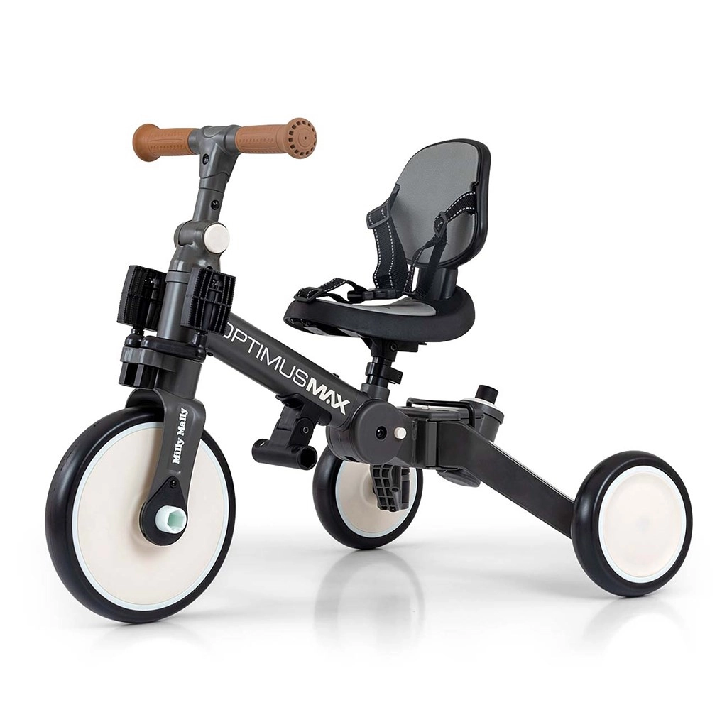 A MILLY MALLY Optimus Max univerzális 5az1-ben gyermek tricikli és futóbicikli együtt nő a gyermekkel 12 hónapos kortól. Stabil szerkezetet, kényelmes, párnázott ülést és 4 fokozatban állítható vezetőrudat kínál, így biztonságosan segíthet és irányíthat. A habkerekek csendes gurulást biztosítanak, az állítható ülésmagasság és -távolság, a 3 pontos biztonsági övek és a felhajtható hátsó kerekek pedig a komfortot és a biztonságot szolgálják. Könnyedén átalakítható tricikliről futóbiciklire a gyermek készségeihez igazodva.