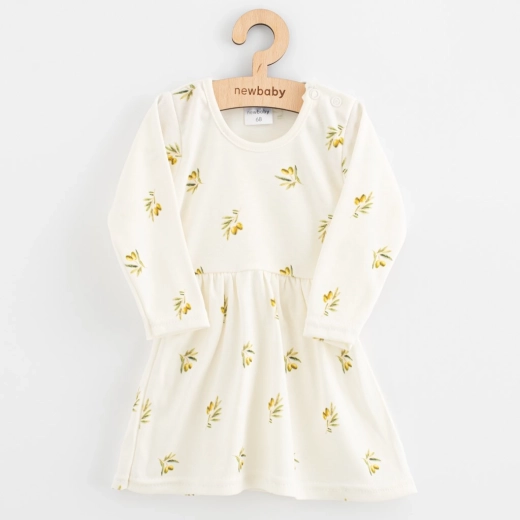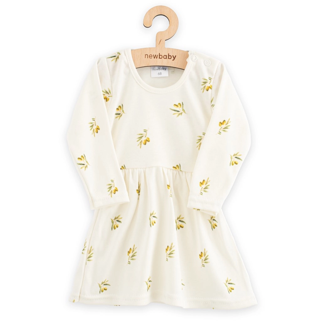 A New Baby Olívák aranyos újszülött ruhácskája 100% organikus pamutból, hosszú ujjal, puha, jól szellőzik és kényelmes viselet. Enyhén ráncolt szoknyácskával, praktikus patentos záródással a könnyű öltöztetéshez és játékos olívamintával. Az OEKO-TEX STANDARD 100 tanúsítvány biztosítja az érzékeny bababőr számára a biztonságot.