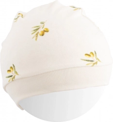 Aranyos organikus pamutból készült New Baby gyermek sapka olívás mintával, puha, légáteresztő és kíméletes az érzékeny bőrhöz. A szélesebb, laza passzé nem szorítja a fejet, így kényelmes viseletet biztosít. Az OEKO-TEX STANDARD 100 tanúsítvány garantálja a biztonságos, káros anyagoktól mentes anyagokat.
