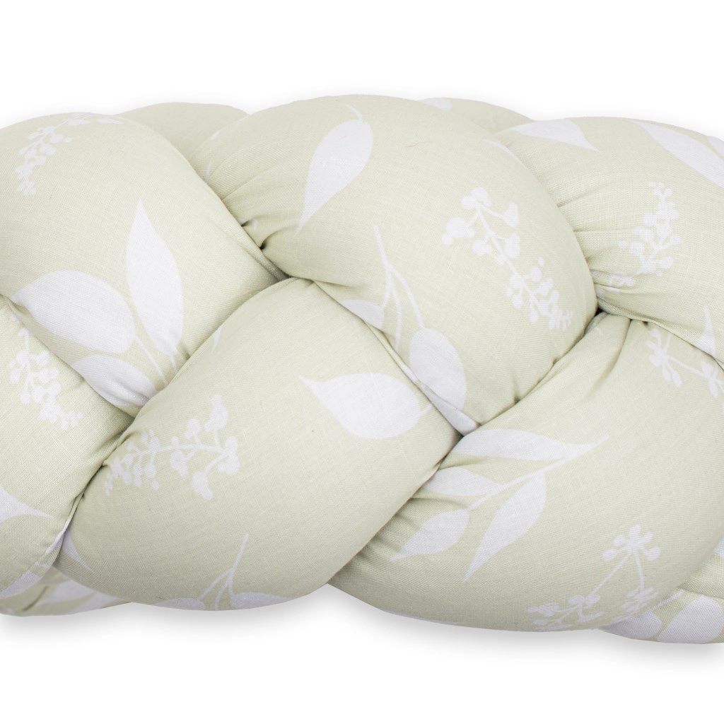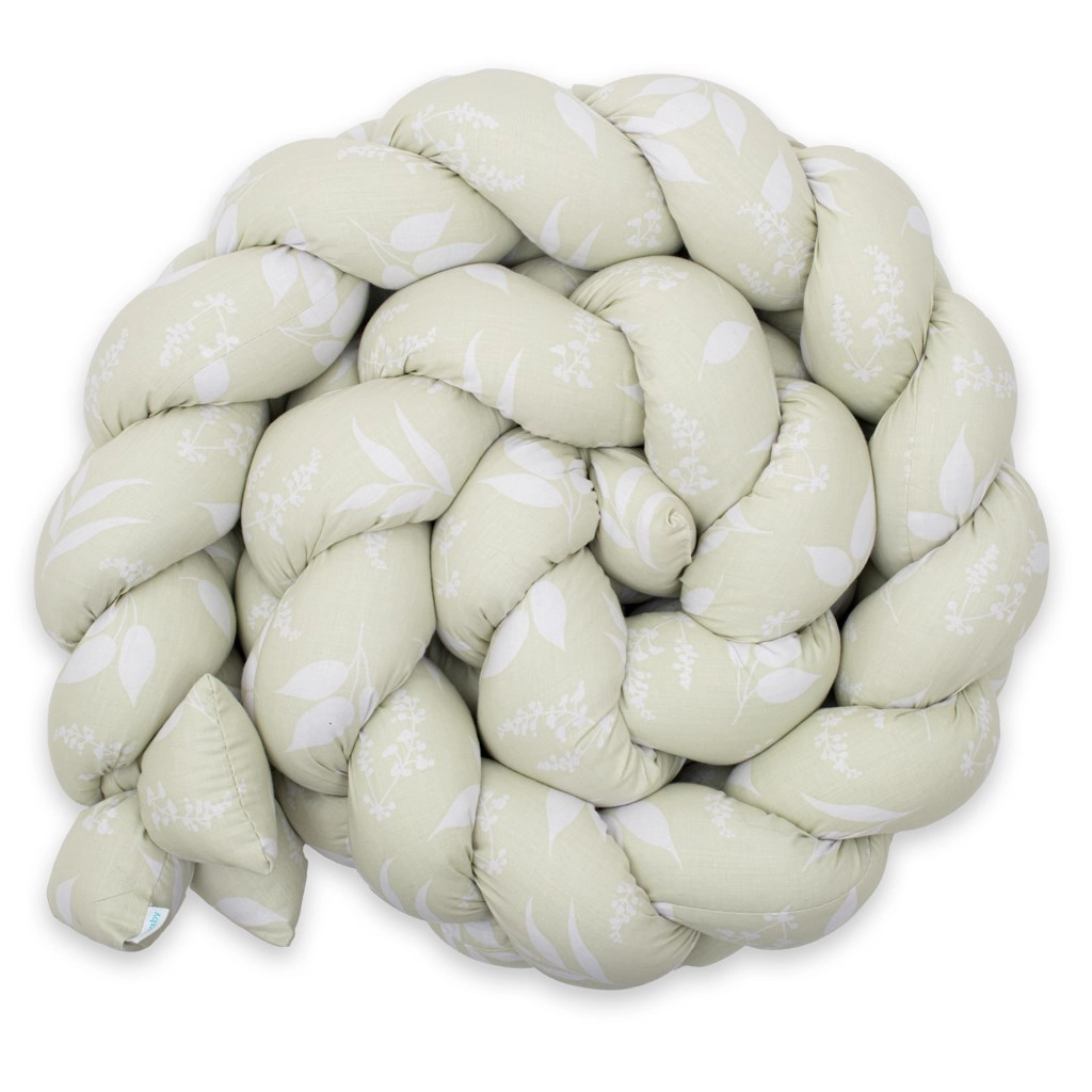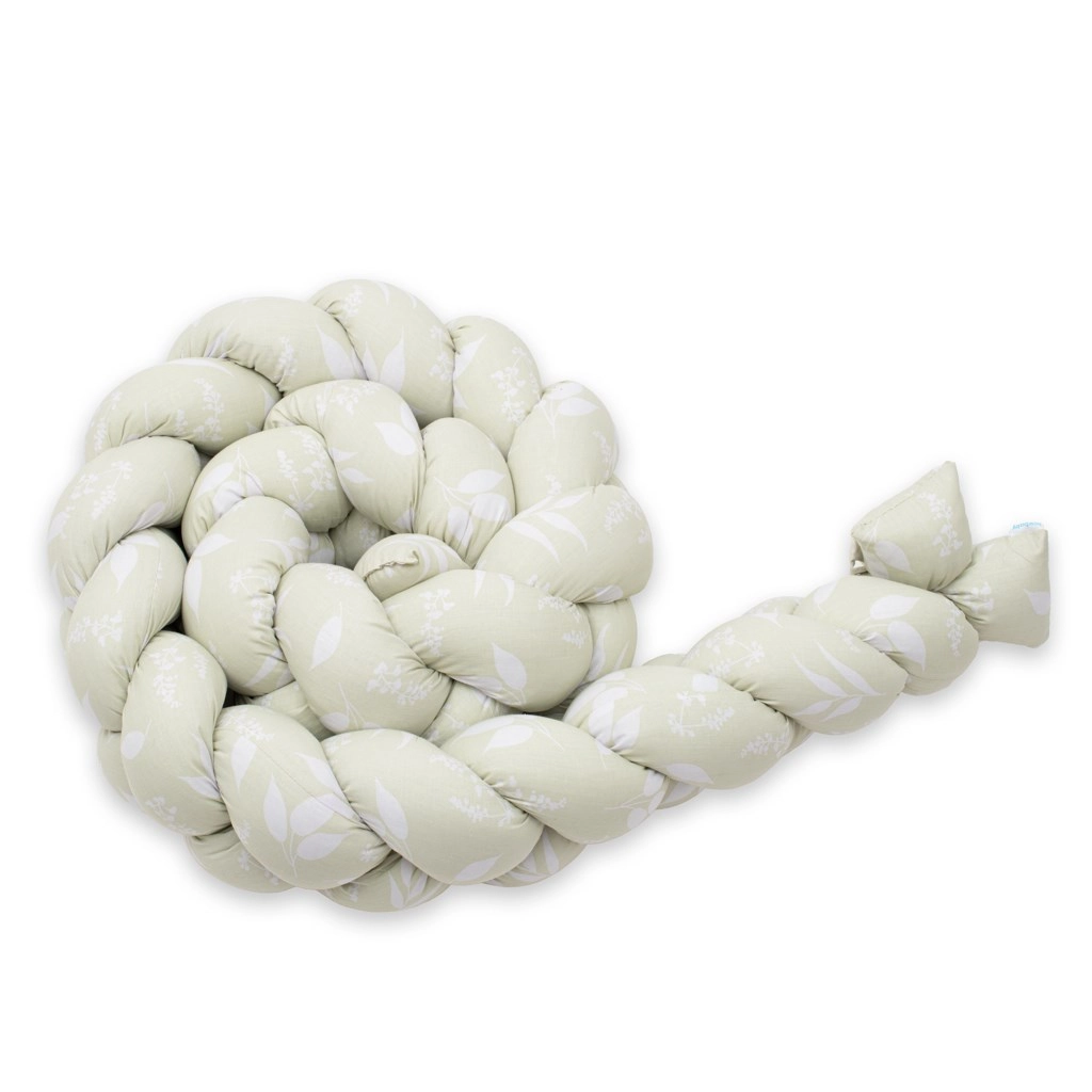 Puha és biztonságos kiságyrács-védő NEW BABY fonat kivitelben, levélmintával, amely megvédi a babát az ütődésektől és a huzattól. 100% pamutból készült, antiallergén töltettel, rugalmas, könnyen alkalmazkodik bármely kiságyhoz, és a mellékelt szalagoknak köszönhetően stabilan a helyén marad. Az OEKO-TEX tanúsítvány kíméletességet garantál a baba bőréhez.