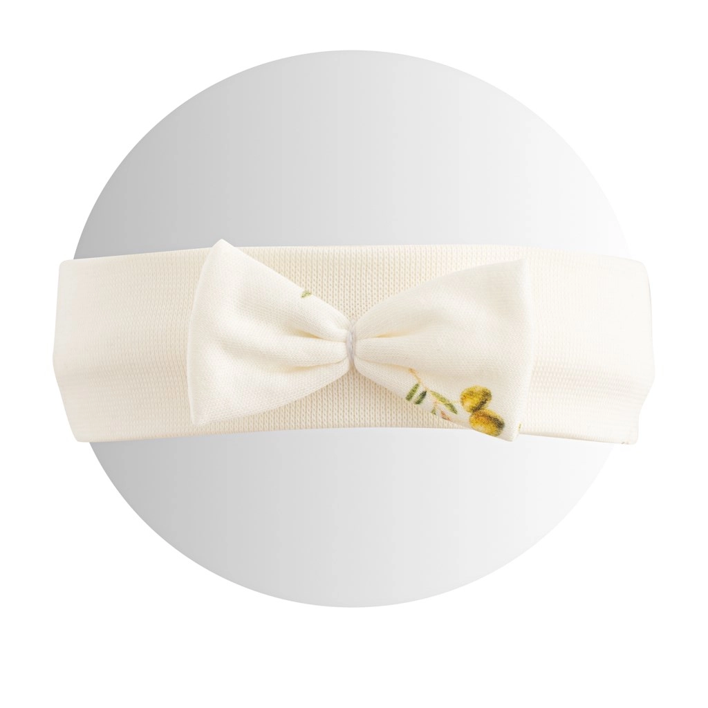 Stílusos fejpánt kis hercegnőknek, amely ötvözi a finom dizájnt és a maximális kényelmet. 100% organikus pamutból készült, amely kíméletes az érzékeny bőrhöz, és alkalmas allergiásoknak valamint atópiás ekcémás gyerekeknek is. Az időtálló olívaminta egyedi sikket kölcsönöz az öltözéknek.