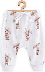 Kényelmes, 100% pamutból készült gyerek melegítőnadrág ötletes mintával és kényelmes gumis derékkal. Szélesebb passzék a szárak végén, díszítőkötő és OEKO-TEX STANDARD 100 tanúsítvány a legkisebbek biztonságáért és kényelméért.