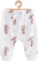 Stílusos és finom tapintású jogger melegítőnadrág, ideális a mindennapi viseléshez otthon és sétákhoz. A minőségi pamutkötött anyagnak köszönhetően légáteresztő, kellemes tapintású és kíméletes a gyerekbőrhöz. A cuki nyuszi minta játékos megjelenést kölcsönöz az öltözetnek.