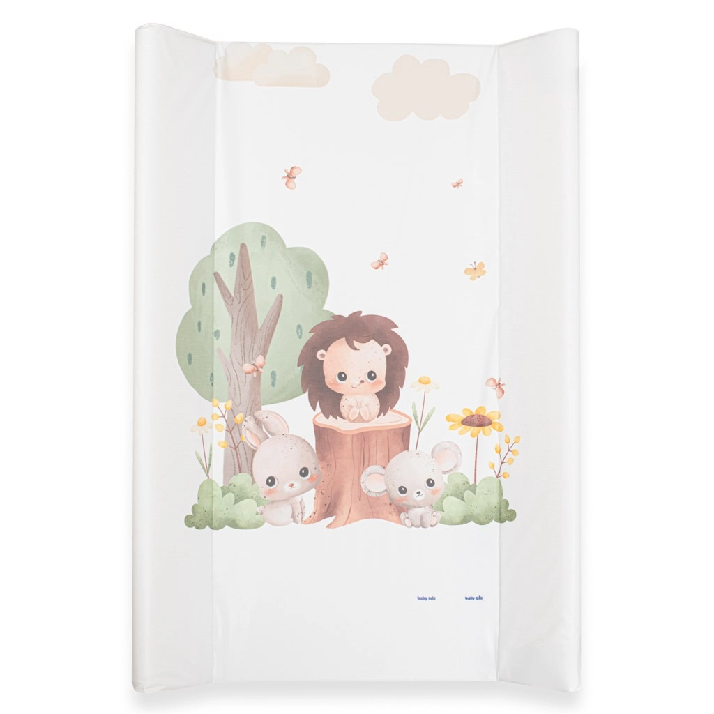 A BABY MIX pelenkázó alátét erdei állatkás mintával biztonságos, higiénikus és kényelmes hátteret nyújt a mindennapi babagondozáshoz. A megerősített lapnak és a csúszásgátló pöcköknek köszönhetően stabil és megbízható, a ftalátmentes felület kíméletes a baba bőréhez. A 47 × 70 cm-es kompakt méret a legtöbb komódra és pelenkázóra illik.