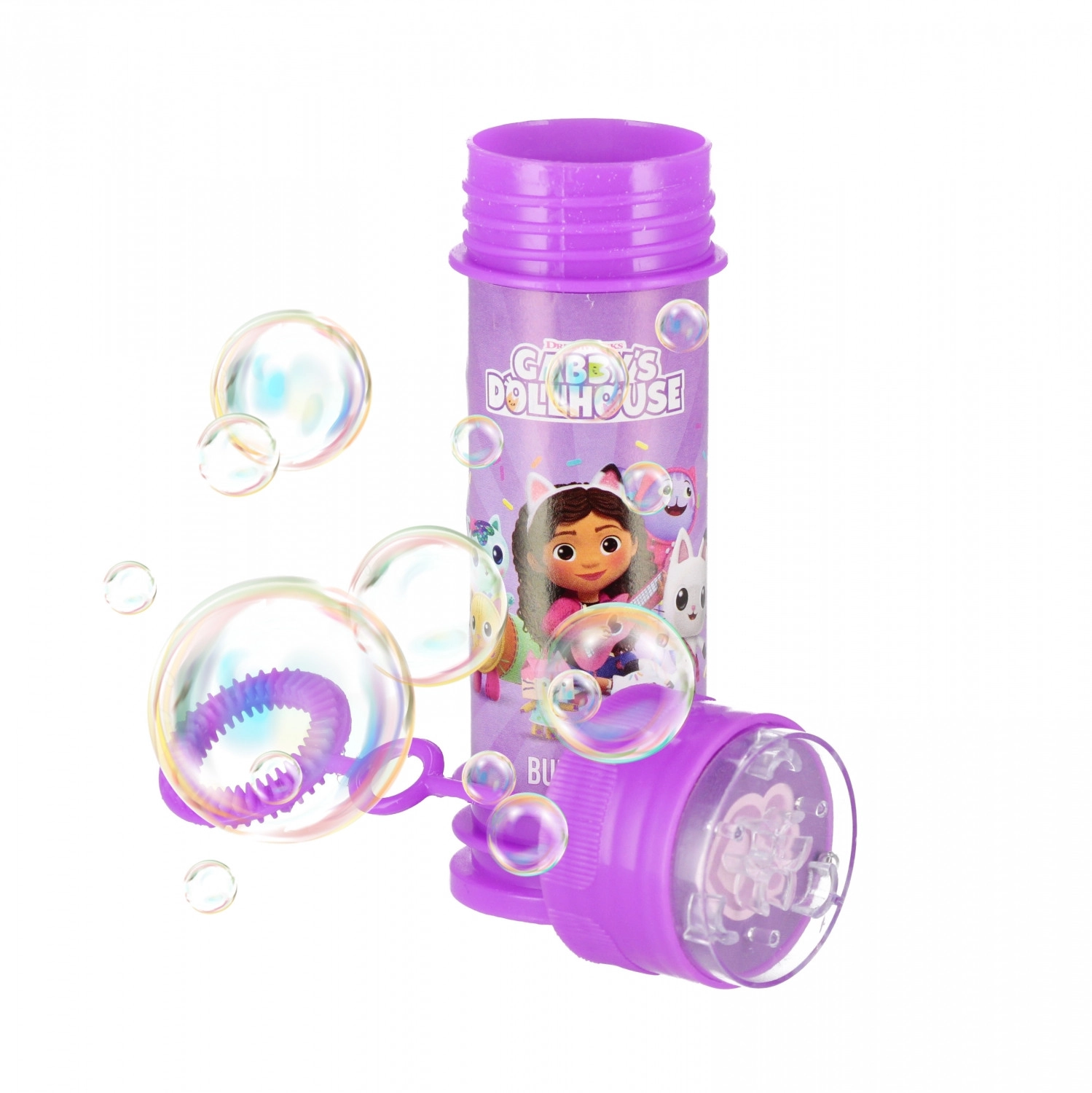 A közkedvelt GABBY'S DOLLHOUSE motívumú buborékfújó ideális kerti játékhoz, játszótérre és ünnepségekre. A praktikus, 55 ml-es kiszerelésnek köszönhetően könnyű, zsebben vagy hátizsákban is elfér, és a gyerekek hosszú percekig élvezhetik vele a játékot.