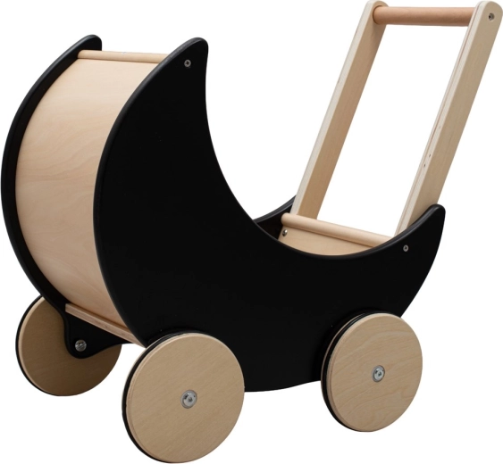 Stílusos, fából készült 2 az 1-ben babakocsi és járássegítő Montessori BABY MIX elegáns fekete színben, amely támogatja az első lépéseket és a finom- illetve nagymozgások fejlődését. Kínál stabil támaszt járás közben, bőséges helyet a játékhoz és biztonságos kialakítást lekerekített élekkel. Ideális kis felfedezőknek 12 hónapos kortól.
