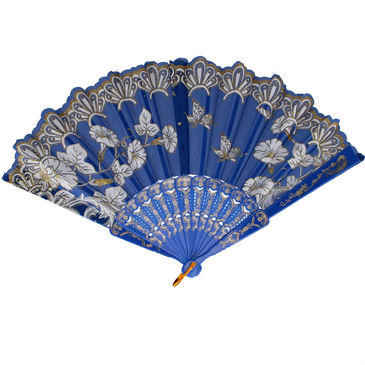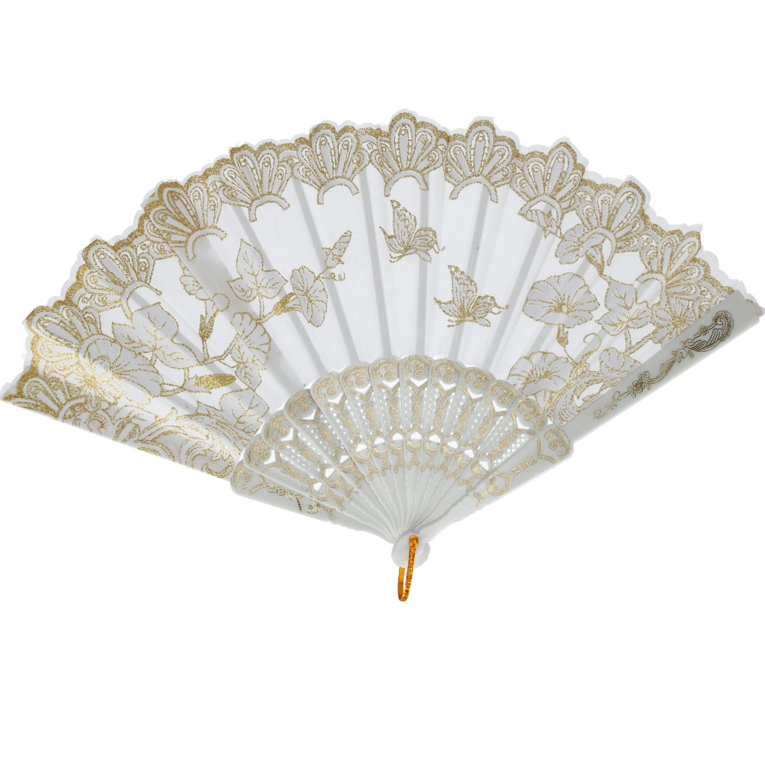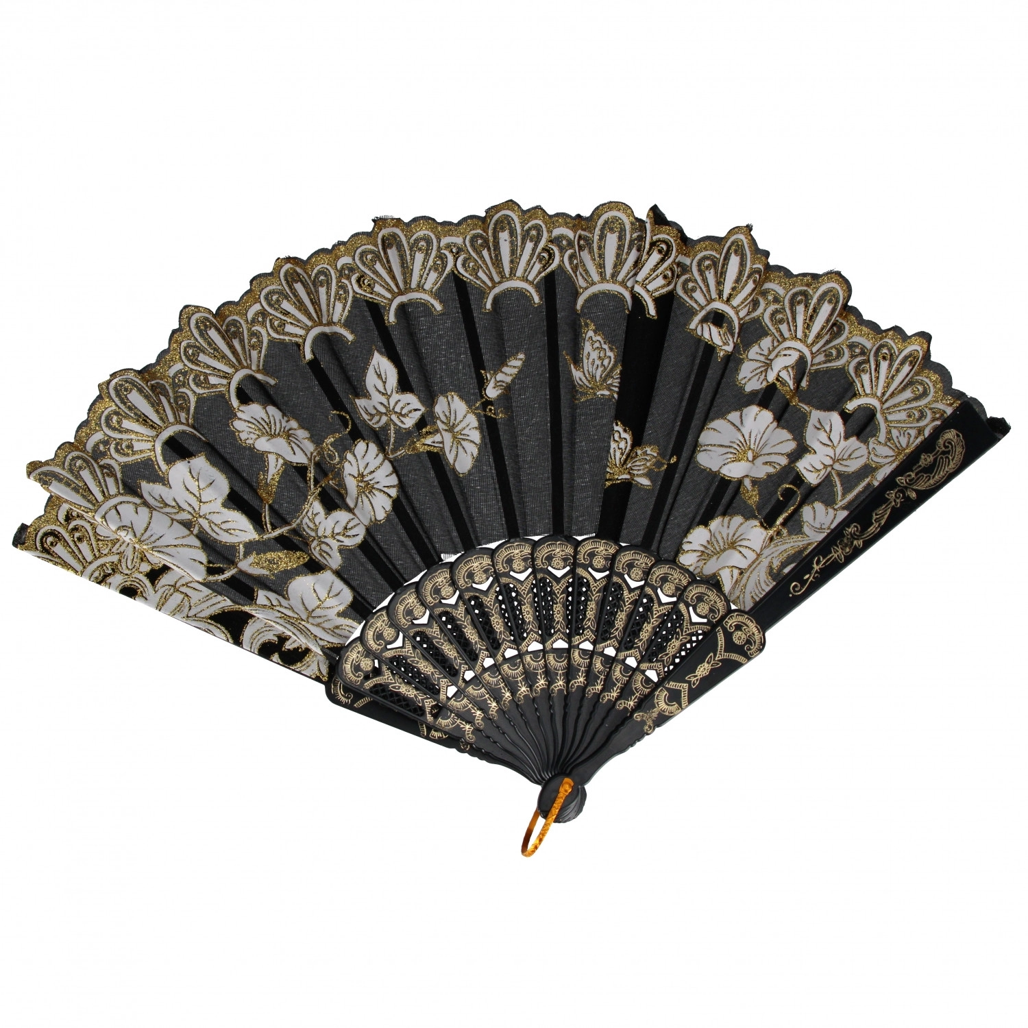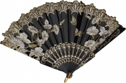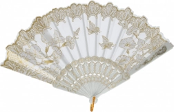 Ez a dekoratív, összehajtható legyező ötvözi a praktikusságot és az esztétikumot. Kompakt, 23 cm-es méretének köszönhetően elfér a kézitáskában vagy a hátizsákban, és azonnal kellemes fuvallatot biztosít. A textil lapok finom virágmintával és arany részletekkel stílusos és elegáns megjelenést kölcsönöznek.