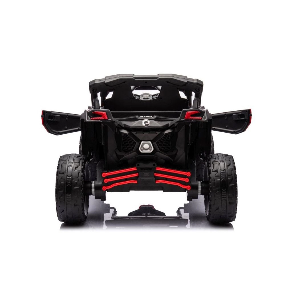 A multimédiás központ MP3, USB, SD és rádió funkcióival kedvenc zenével szórakoztatja a kis sofőröket, míg a 2,4G Bluetooth távirányító lehetővé teszi a szülők számára a menet felügyeletét. A nagyobb kényelem és biztonság érdekében biztonsági öv, EVA kerekek a csendes gördüléshez és bőr ülés is található benne. A rugós felfüggesztés és az alsó védőburkolat stabilitást és védelmet biztosít vezetés közben.