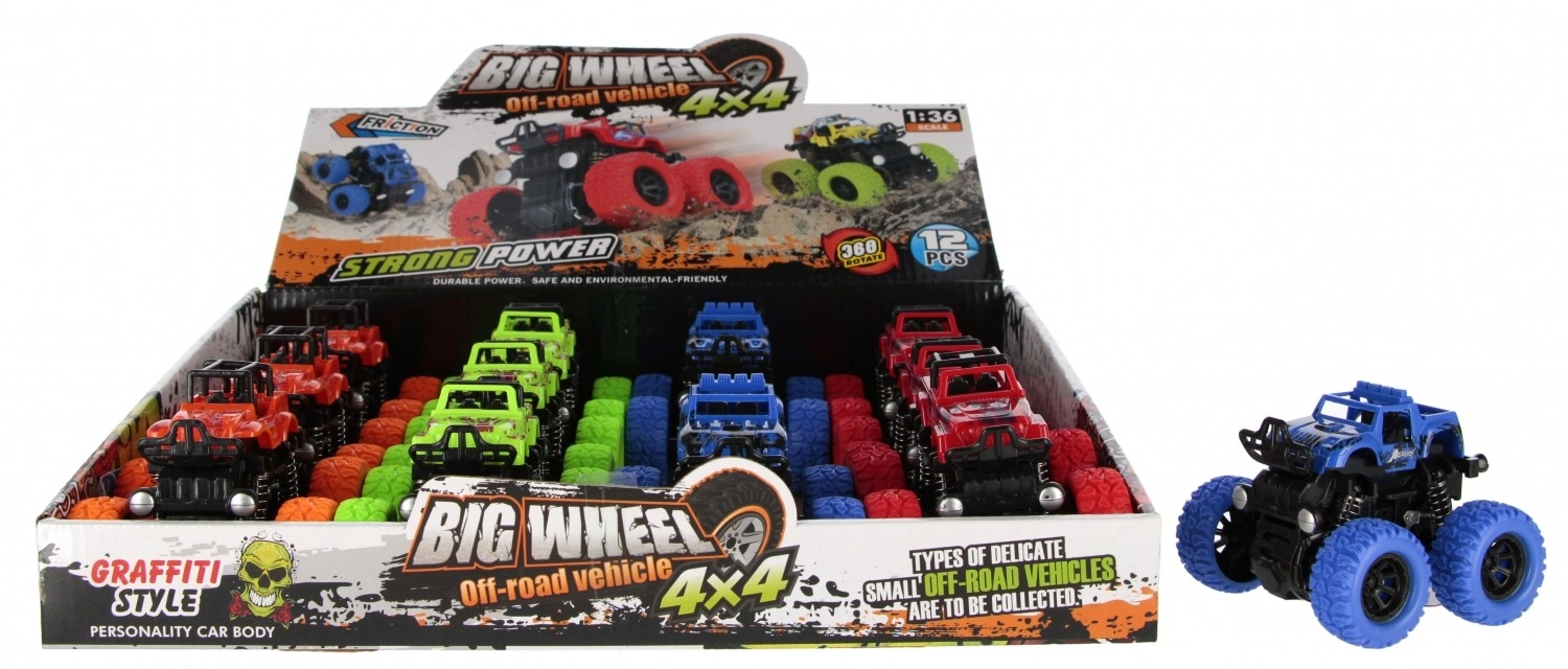 A játék négy színváltozatban érhető el, és a masszív kivitelnek köszönhetően szőnyegen, járólapon és játszótéren is jól boldogul. Ideális ajándék kis autó- és off-road rajongóknak, amely fejleszti a fantáziát és kreativitást.
