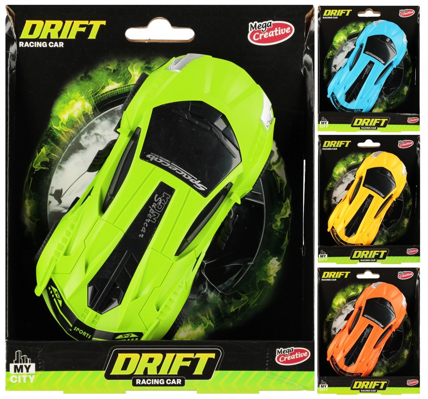 A Mega Creative verseny-drift autó autentikus élményt nyújt a gyors vezetéshez és a drifteléshez. Csak húzd hátra, engedd el, és az autó magától elindul. A speciális kiegészítő keréknek köszönhetően sima, látványos csúszásokat tud, amelyek lenyűgöznek minden versenyrajongót.
