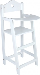 Ez a tiszta fehér színű fa etetőszék babáknak stílusos kiegészítője a gyerekszobának és a nappalinak egyaránt. A visszafogott szívalakú kivágás a háttámlán kedves megjelenést ad, míg a masszív felépítés biztonságos és tartós szórakozást nyújt.