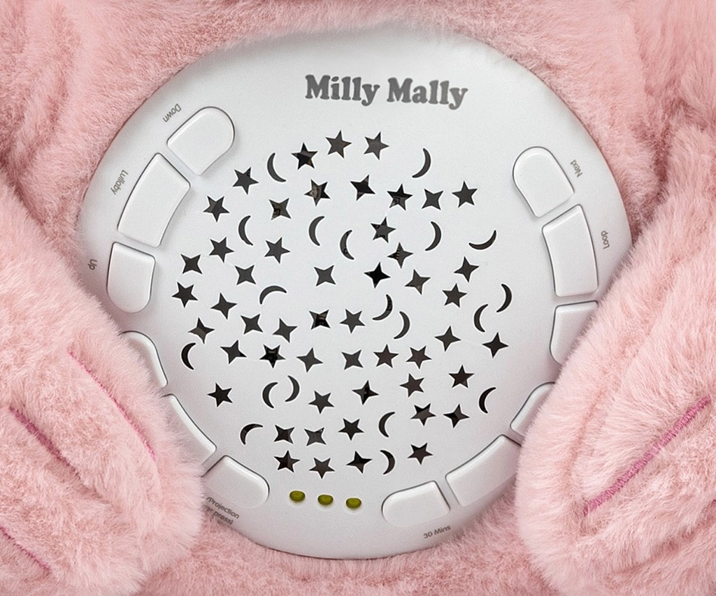 A MILLY MALLY plüss maci nyugodt alvást és biztonságérzetet nyújt a gyermekeknek. A beépített projektor lágy csillagokat varázsol a mennyezetre és a falakra, miközben a megnyugtató dallamok és fehér zaj segítenek ellazulni és könnyebben elaludni. A puha, selymes kivitel ölelgetésre csábít, és már újszülött kortól használható.