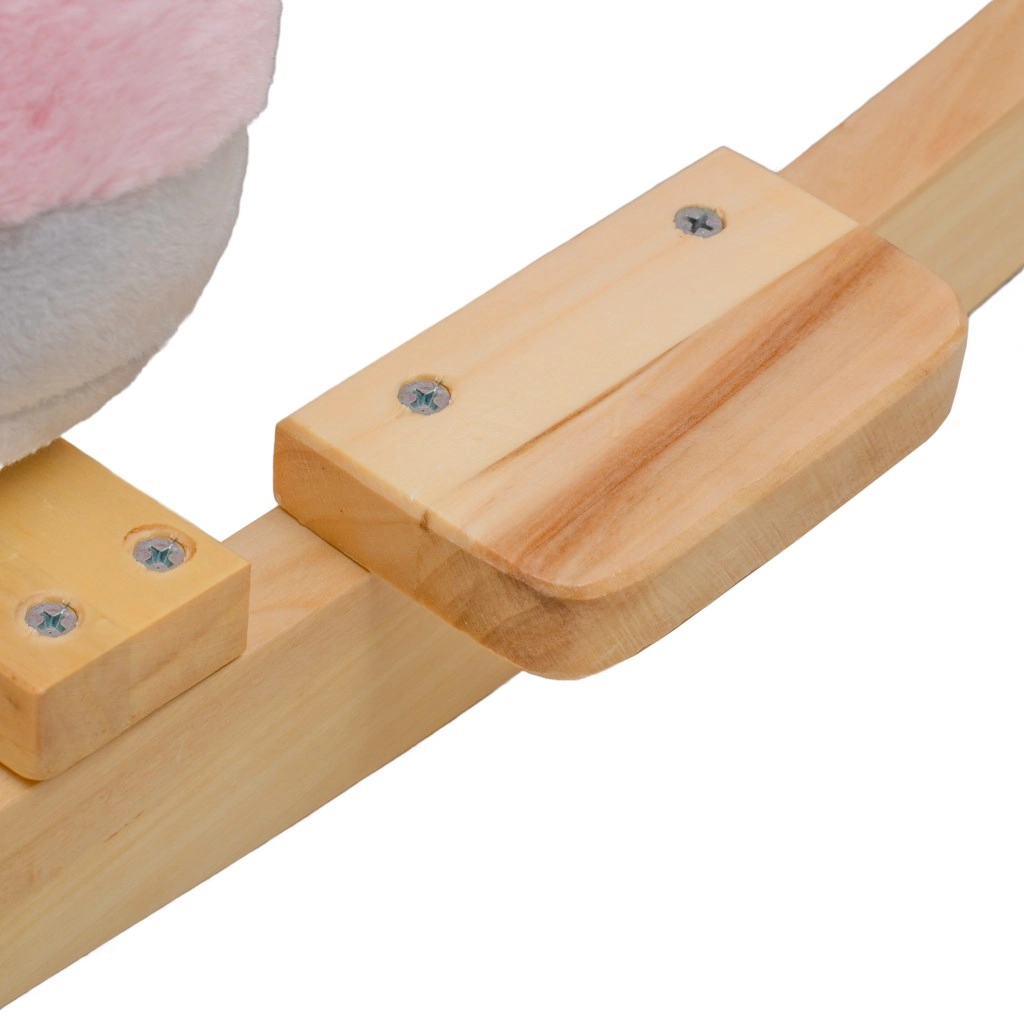 A BABY MIX ringató unikornis ideális társ az első ringatásokhoz. A puha, kellemes tapintású plüss ölelgetésre csábít, míg a masszív fa talpívek és az oldalsó kapaszkodók stabilitást adnak minden mozdulatnál. Az integrált ülés háttámlával és biztonsági övekkel segít a helyes testhelyzet megtartásában.