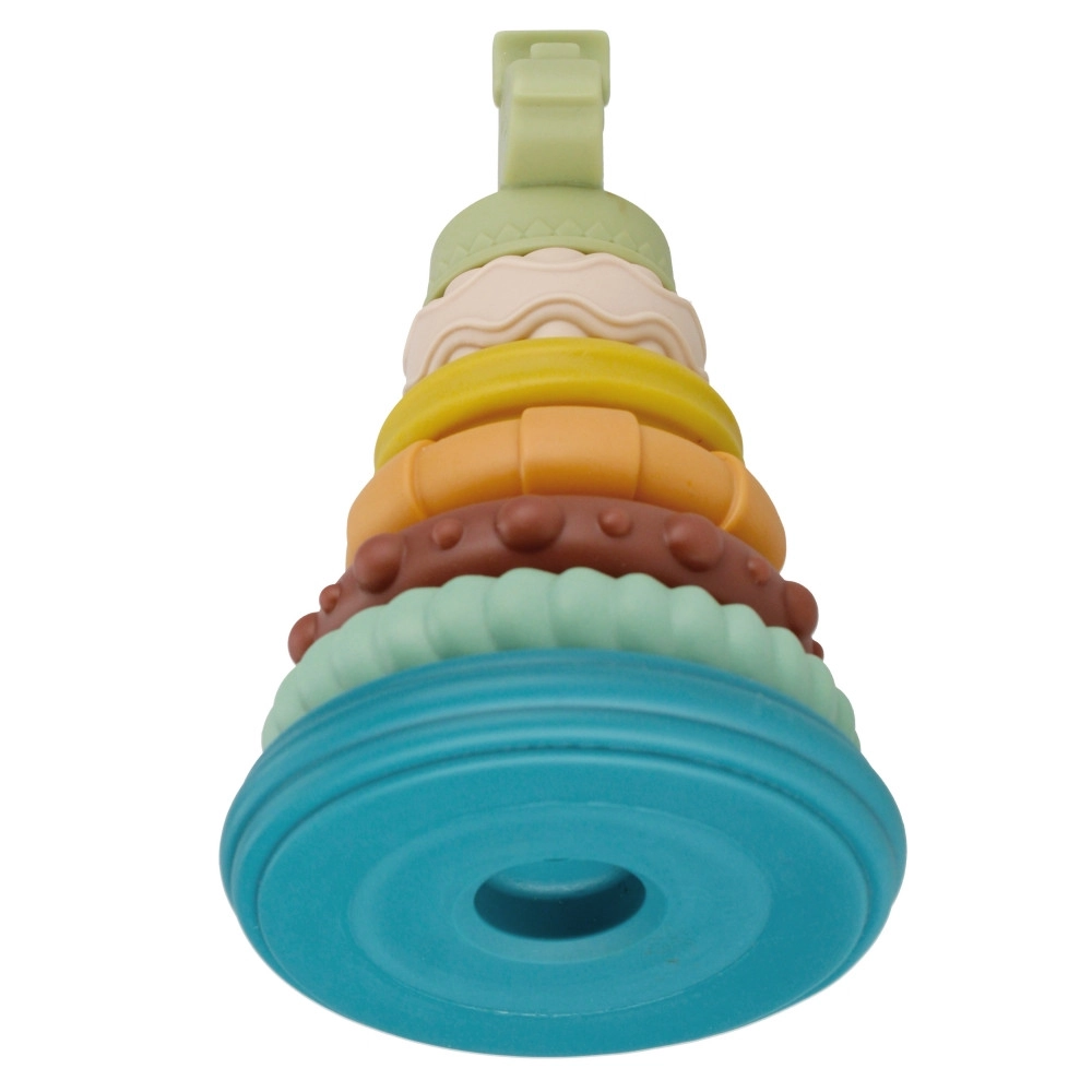 Minden gyűrű más felületű – barázdák, bütykök és hullámok. Támogatja az érzékszervi észlelést és a világ ujjakkal és szájjal történő természetes felfedezését.