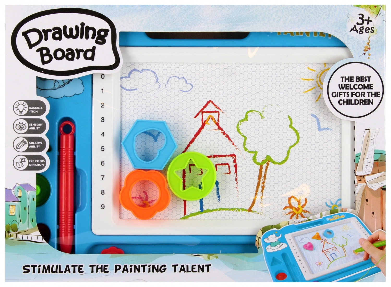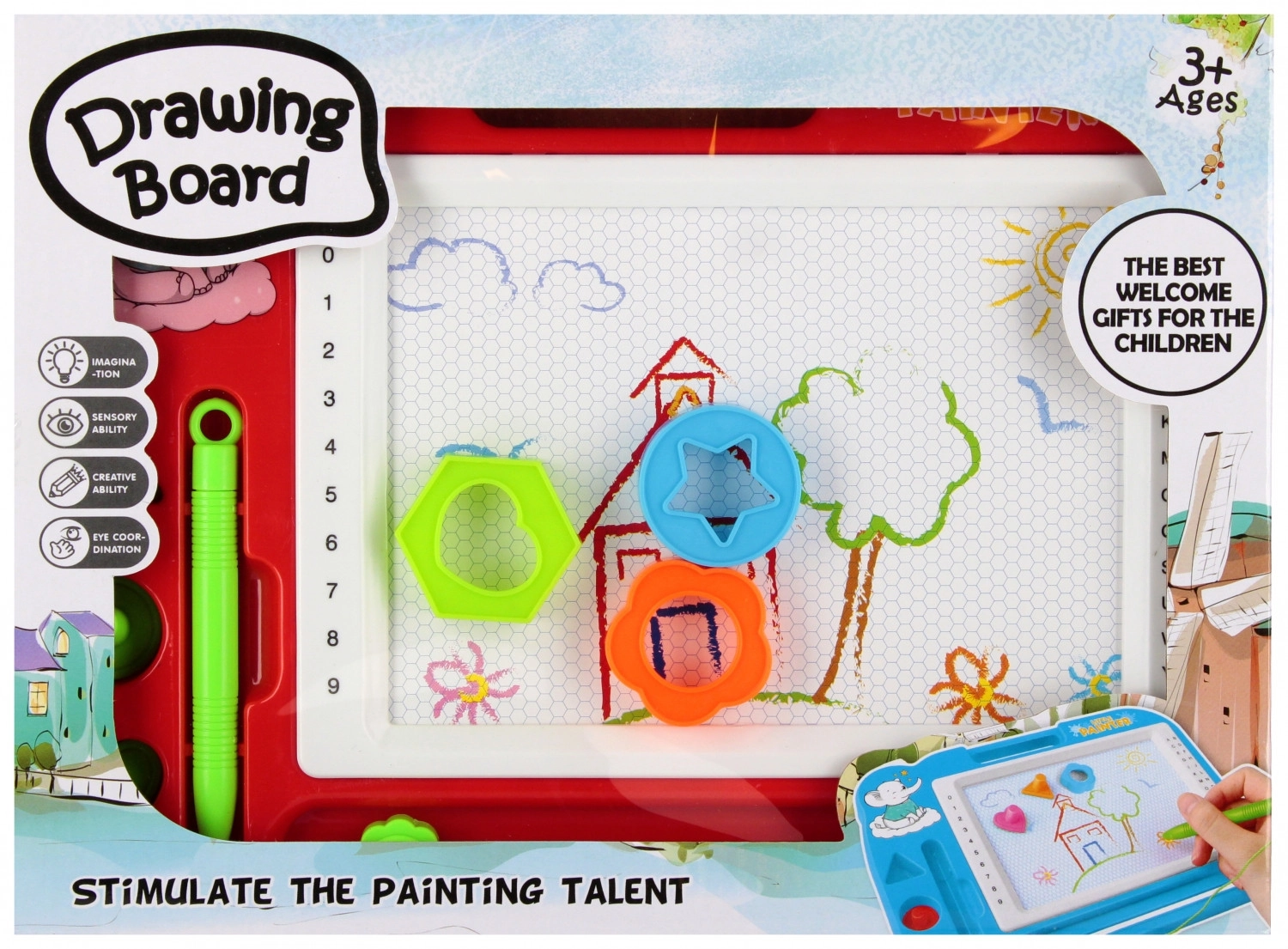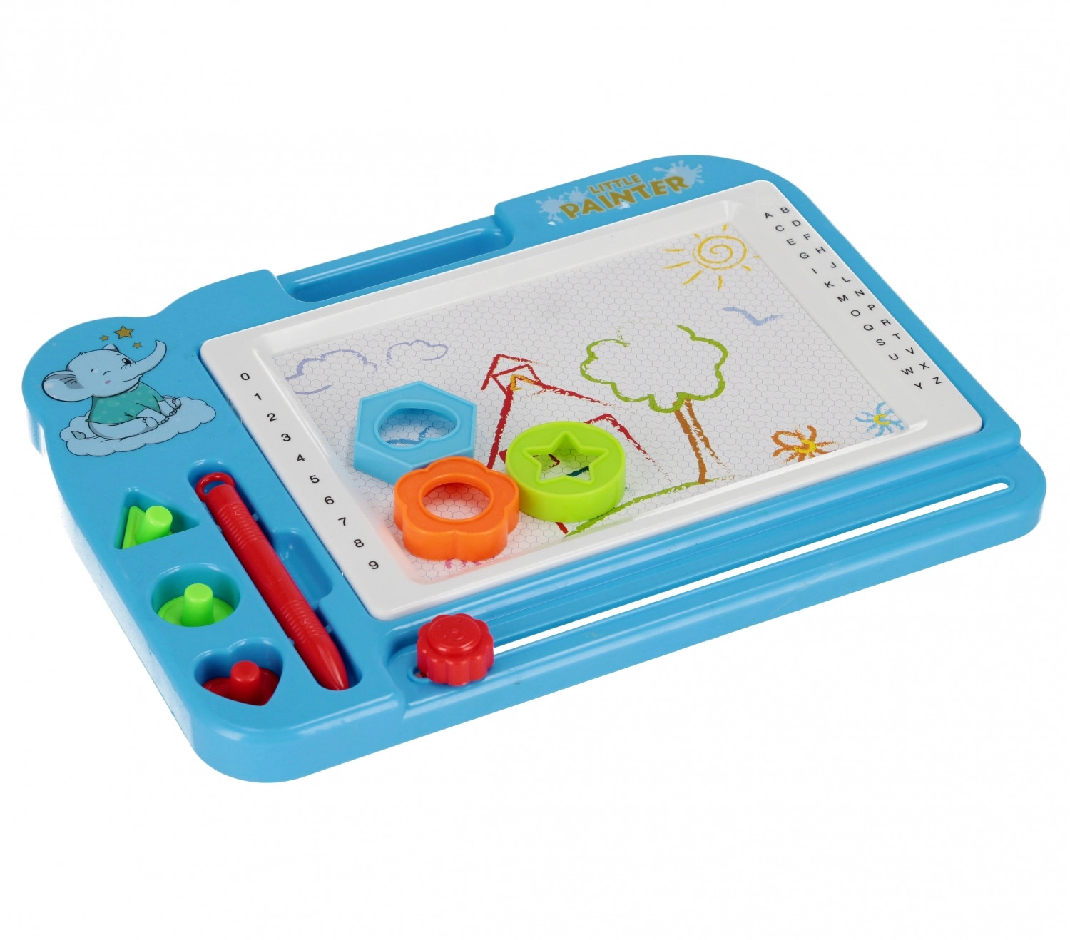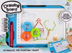 Ez a varázslatos rajztábla egyszerű és tiszta módot kínál a gyerekeknek a fantáziájuk kifejezésére. A mágneses stylus és a formapecsételők segítségével a gyerekek a fehér felületre rajzolnak, majd a csúsztatható radírral egy mozdulattal könnyedén mindent letörölnek. A tábla könnyű, strapabíró, és a praktikus fogantyúnak köszönhetően kényelmes a fogása.