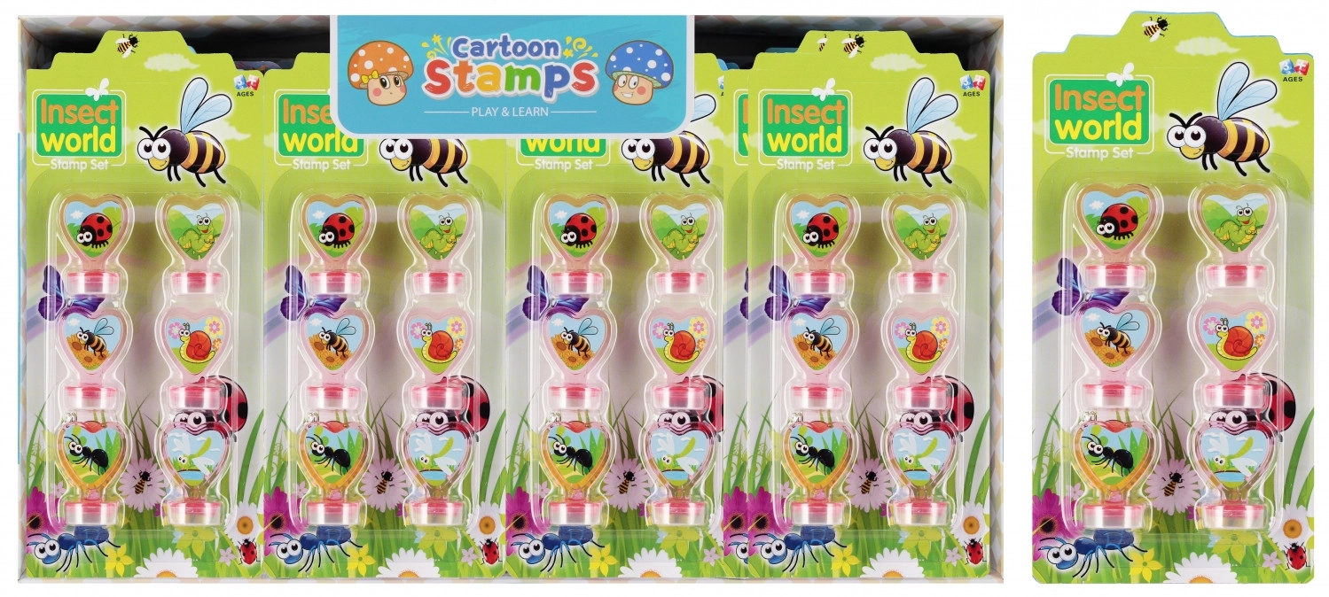 Vidám, rovarmintás bélyegek alkotáshoz és díszítéshez. A készlet 6 bélyegzőt tartalmaz különböző változatokban, ideális füzetek, dobozkák, ékszertartók díszítésére, valamint egyedi képeslapok készítésére. Kompakt csomagolás: 10 × 20 × 3 cm. 3 éves kortól ajánlott.