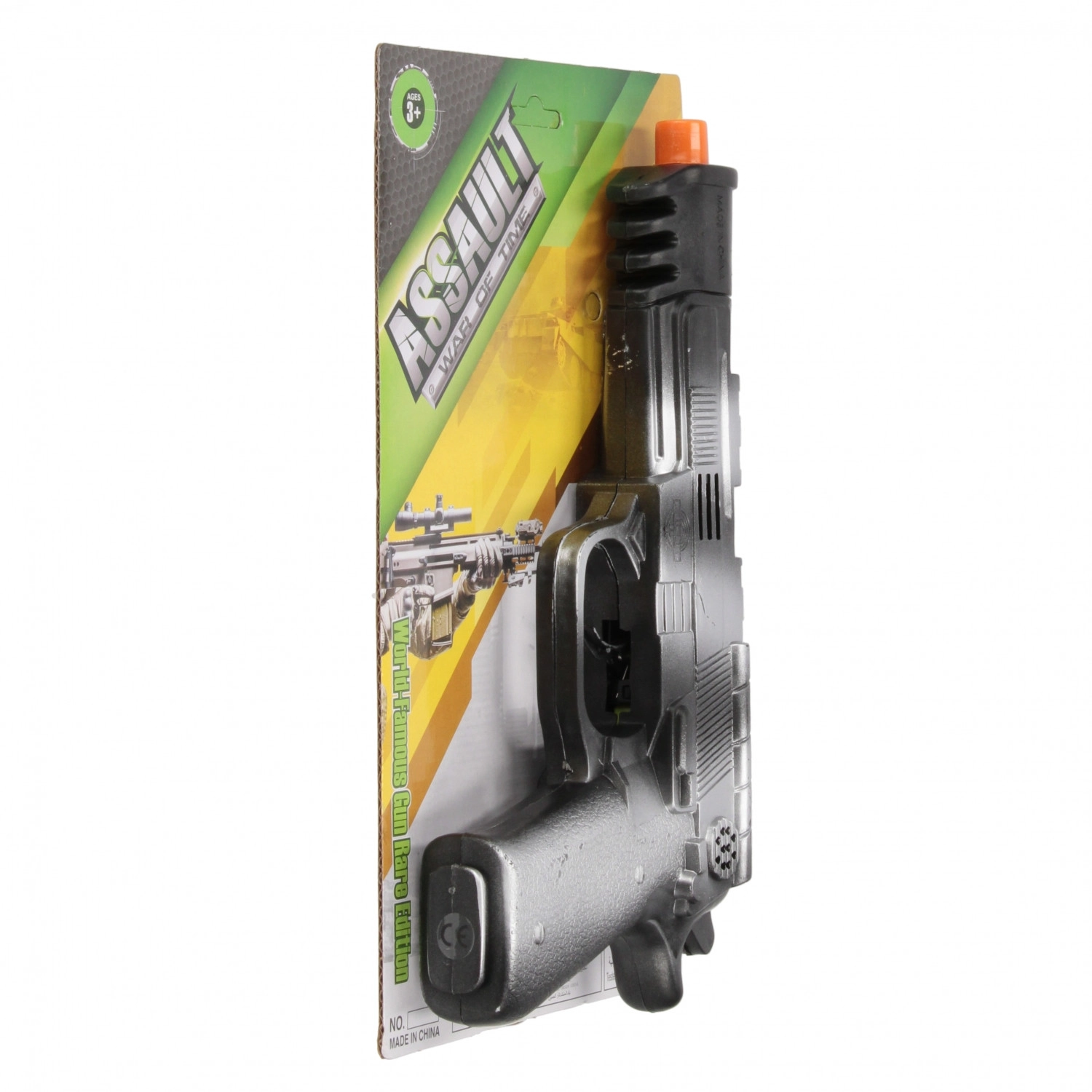 Szórakoztató gyerekpisztoly, amely a ravasz meghúzásakor valósághű hangot ad ki. Kompakt méret 25 × 15 × 4 cm, könnyű kialakítás és egyszerű kezelhetőség. 3 éves kortól ajánlott. Az ár 1 darabra vonatkozik.