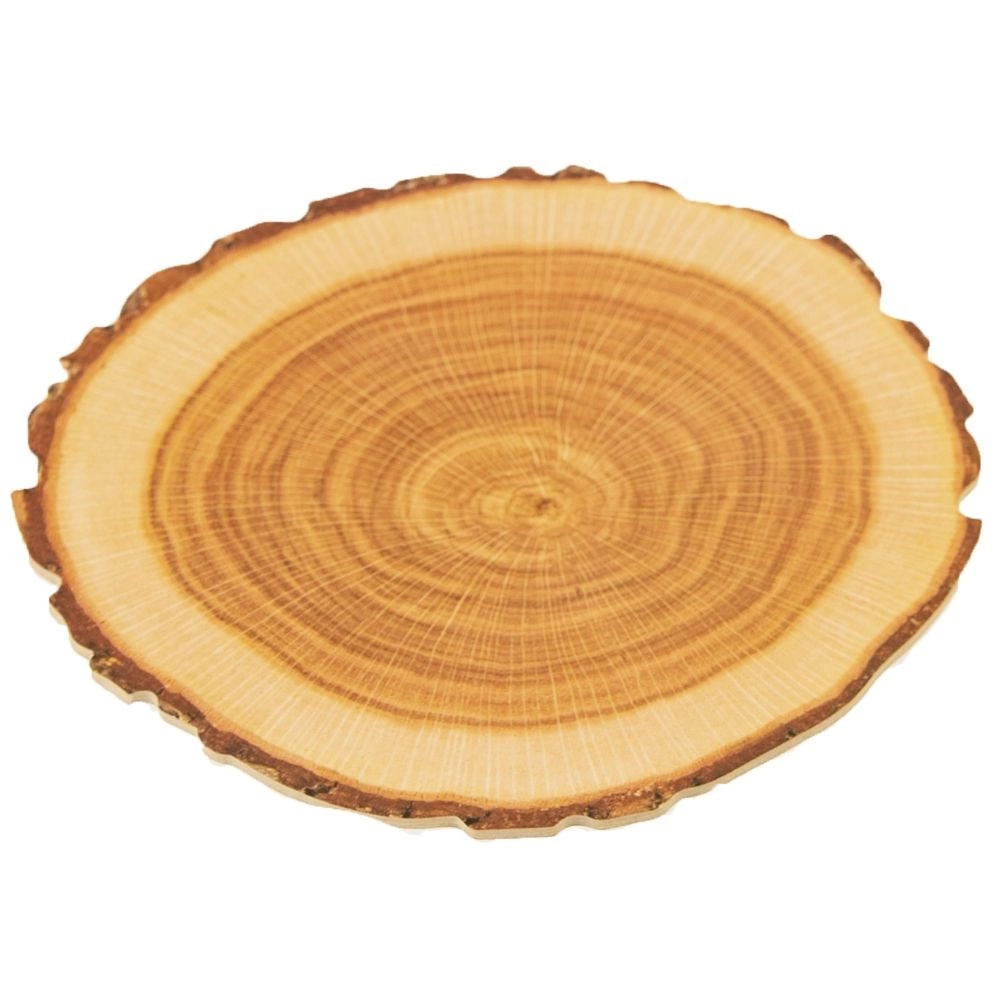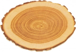 Élethű évgyűrűk és rusztikus perem, amelyek meghitt, természetes hangulatot adnak a terítésnek anélkül, hogy valódi fát kellene használni.