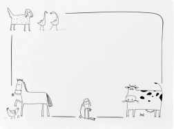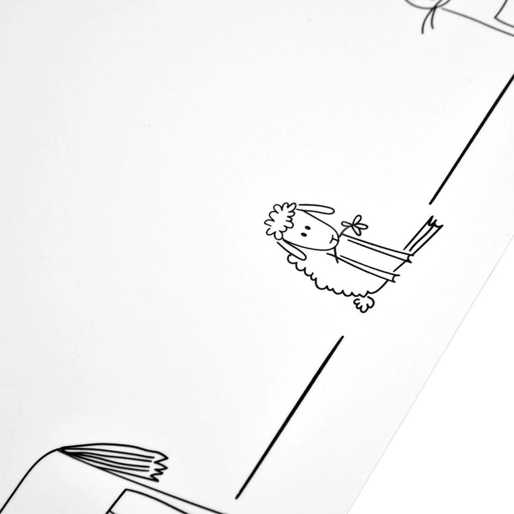 Minimalista fekete-fehér állatillusztrációk, amelyek játékos megjelenést kölcsönöznek a terítéknek és illenek a modern enteriőrhöz.