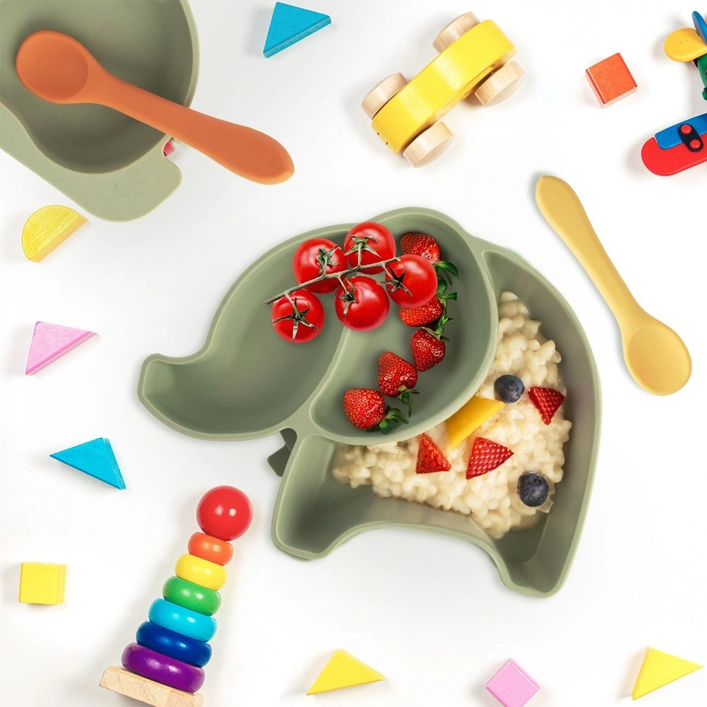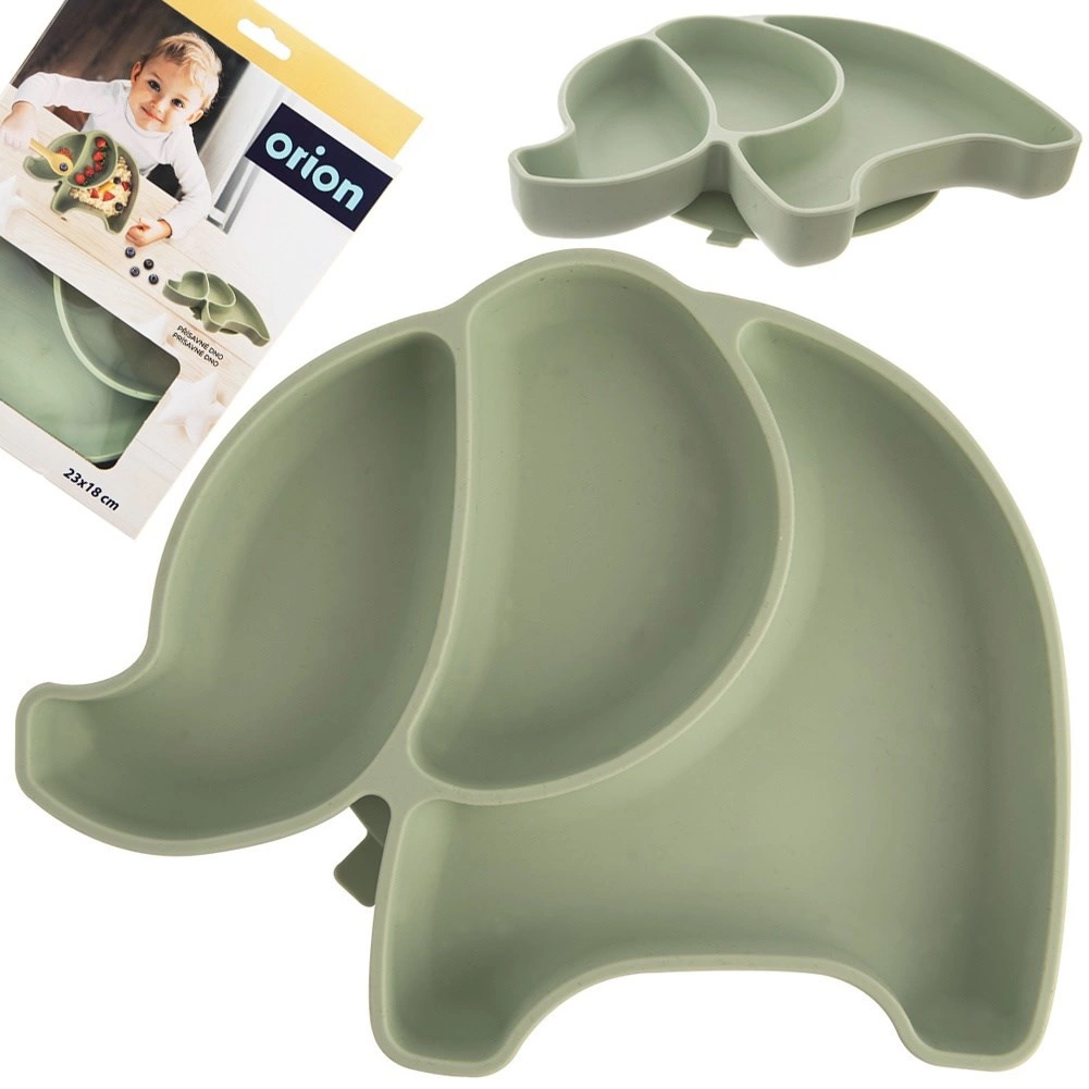 Gyermek szilikon osztott elefánt alakú tányér, zöld 23,5 × 19 × 3,5 cm