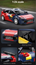 A versenyhangulatú kék–piros karosszéria matricákkal és aerodinamikai elemekkel kiemeli a valódi WRC különlegesség autentikus megjelenését. Az elemek kompatibilisek más CaDA készletekkel, így szabadon bővítheted és alakíthatod.
