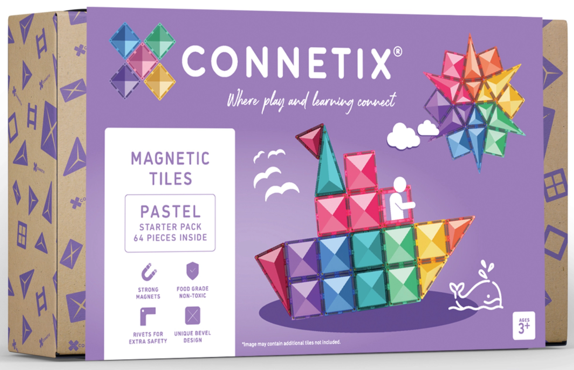A CONNETIX pasztell kezdőcsomag 64 áttetsző lapot tartalmaz finom színekben, amelyekkel a gyerekek tornyokat, várakat, hidakat és rakétákat építhetnek. A széleken futó mágneseknek köszönhetően az elemek minden oldalról kapcsolódnak, a szerkezetek stabilak, a kellemes „kattanás” pedig további felfedezésre ösztönöz. A készlet kiváló a STEAM készségek fejlesztéséhez – a mágnestantól és egyensúlytól a szimmetrián és a 2D/3D geometrián át.
