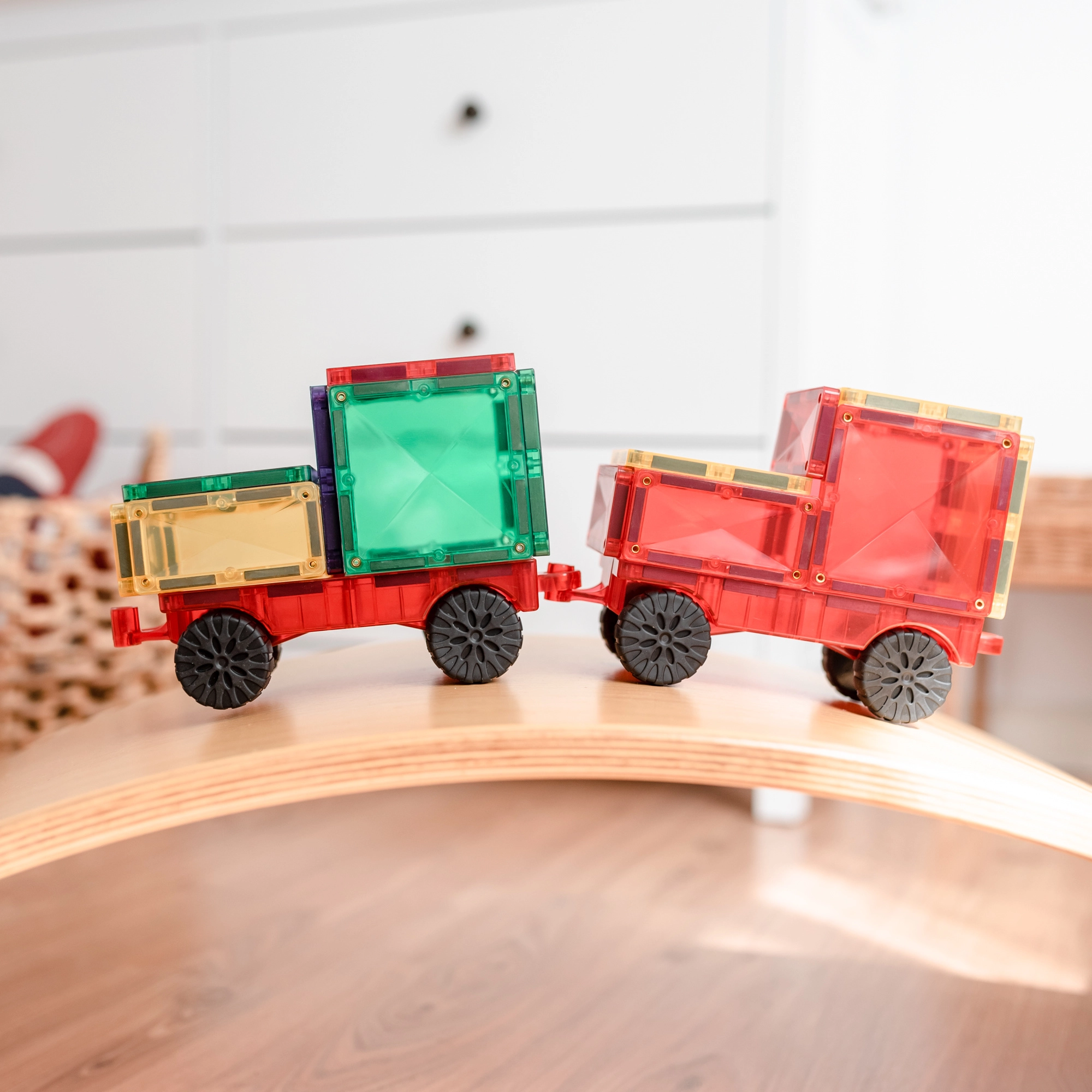 A két kerekes alváz dinamikus játékká alakítja az építést – a teherautóktól a kis vonatokig. Építs, kapcsolj össze és indulj útnak.