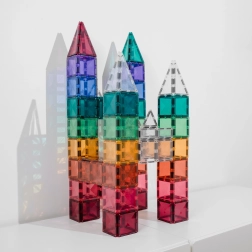 Ez a 40 darabos, négyzet alakú csempéket tartalmazó pasztell szett ideális belépő a mágneses konstrukciók világába. A gyerekek 2D és 3D modelleket is alkothatnak – váraktól és hidaktól kezdve egészen rakétákig – miközben természetes módon fedezik fel a mágnesesség alapelveit, a geometriát és a logikus gondolkodást. Az áttetsző, színálló elemek a erős neodímium mágneseknek köszönhetően minden oldalról megbízhatóan kapcsolódnak, és stabilitást adnak az építményeknek.