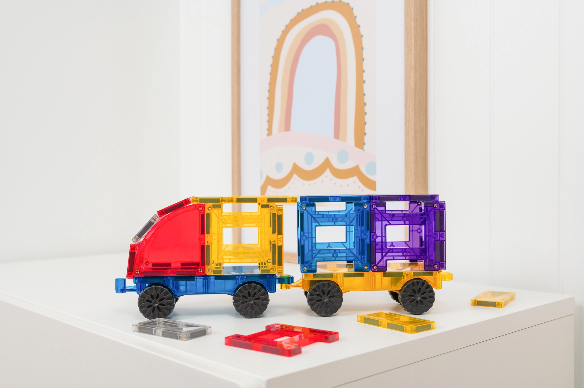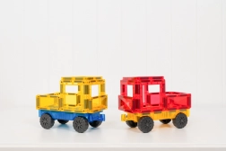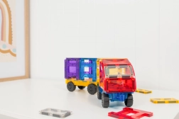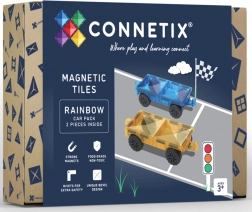 A CONNETIX Rainbow Car Pack két áttetsző, kék és sárga mobil alapot tartalmaz simán gördülő kerekekkel. Könnyedén összekapcsolhatók más CONNETIX mágneses elemekkel, így pillanatok alatt saját autókat, teherkocsikat vagy vonatokat készíthet. Az erős neodímium mágnesek minden oldalról stabilan tartanak, a jellegzetes „kattanás” pedig még élvezetesebbé teszi az építést.