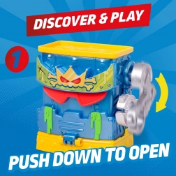Járj túl a védelmi mechanizmusok eszén, szerezd meg az értékes Kazoom energiakapszulákat, és légy Kaboom City hőse. A MR KING Titkos bázisa tele van meglepetésekkel – forgó és toló panelek, álajtók és ravasz csapdák teszik próbára a gyorsaságodat és leleményességedet. A szett ideális önálló játékhoz és páros kihívásokhoz is.