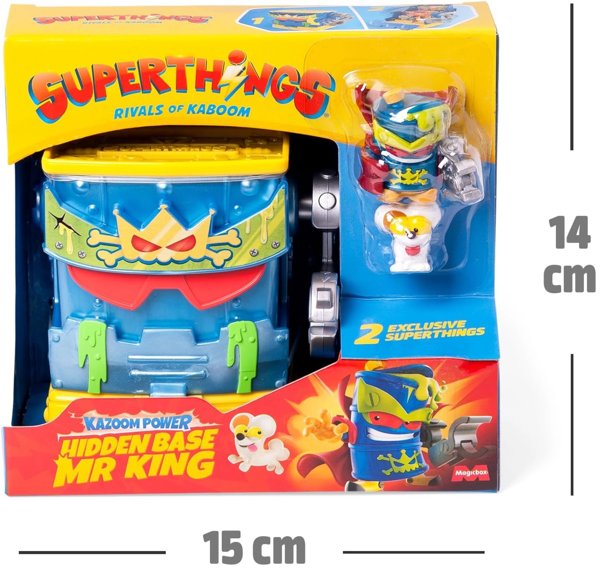 Lépj be a SuperThings világába, és fedezd fel a MR KING Titkos bázisát, amelyet a Kazoom Power sorozat ihletett. A játékszett rejtett átjárókat, logikai mechanizmusokat és exkluzív figurákat tartalmaz: Mr Kinget és Ron Ront. Tökéletes azoknak a gyerekeknek, akik imádják az interaktív kalandokat és a rejtvényeket, amelyek fejlesztik a logikus gondolkodást.