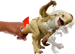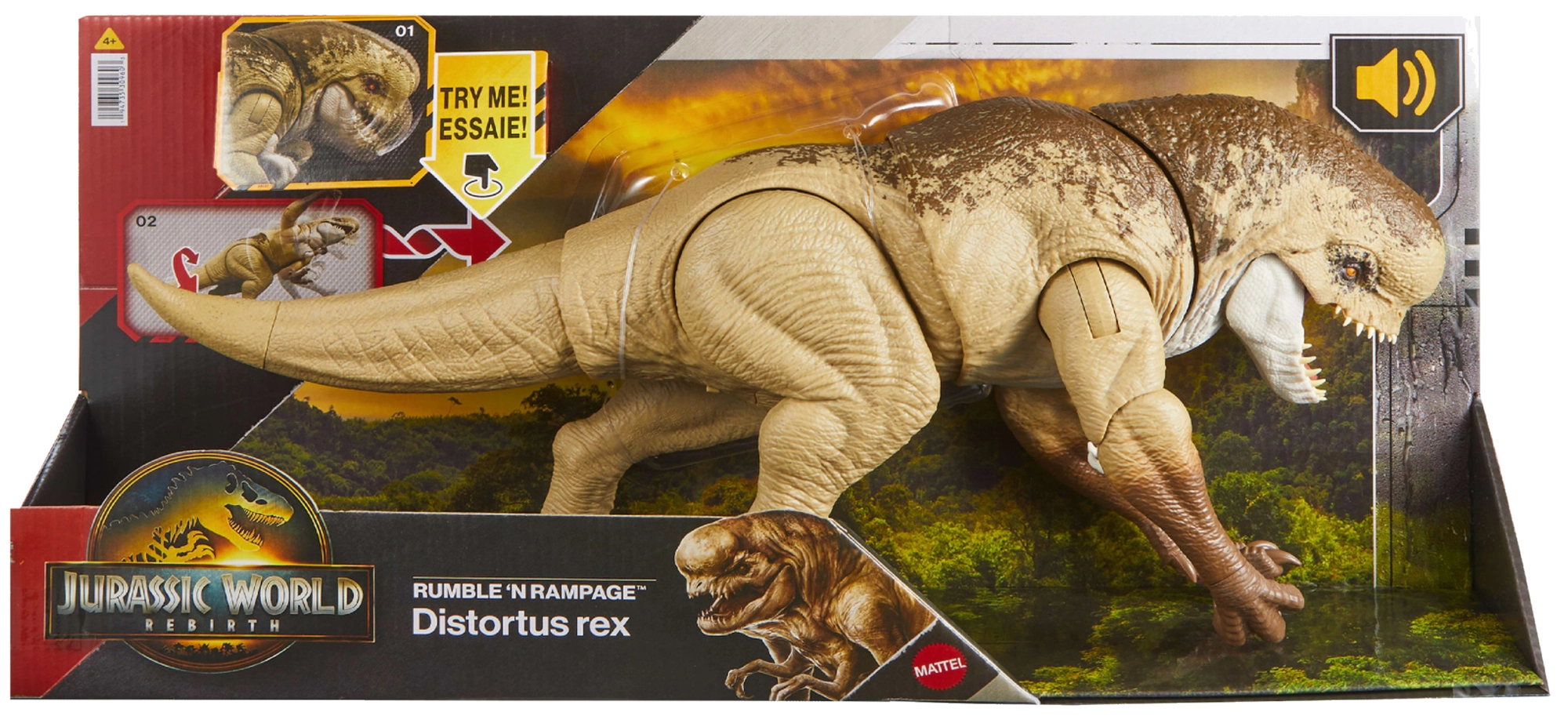 Fedezd fel a félelmetes ragadozót, a Distortus Rexet autentikus filmes részletekkel, izmos sziluettel és valósághű pikkelytextúrával. A gomb megnyomásával üvöltést és harapást indíthatsz, a farok elfordításával pedig pusztító mancsütést válthatsz ki. A figura remek választás akciódús játékhoz és kiállításhoz egyaránt.