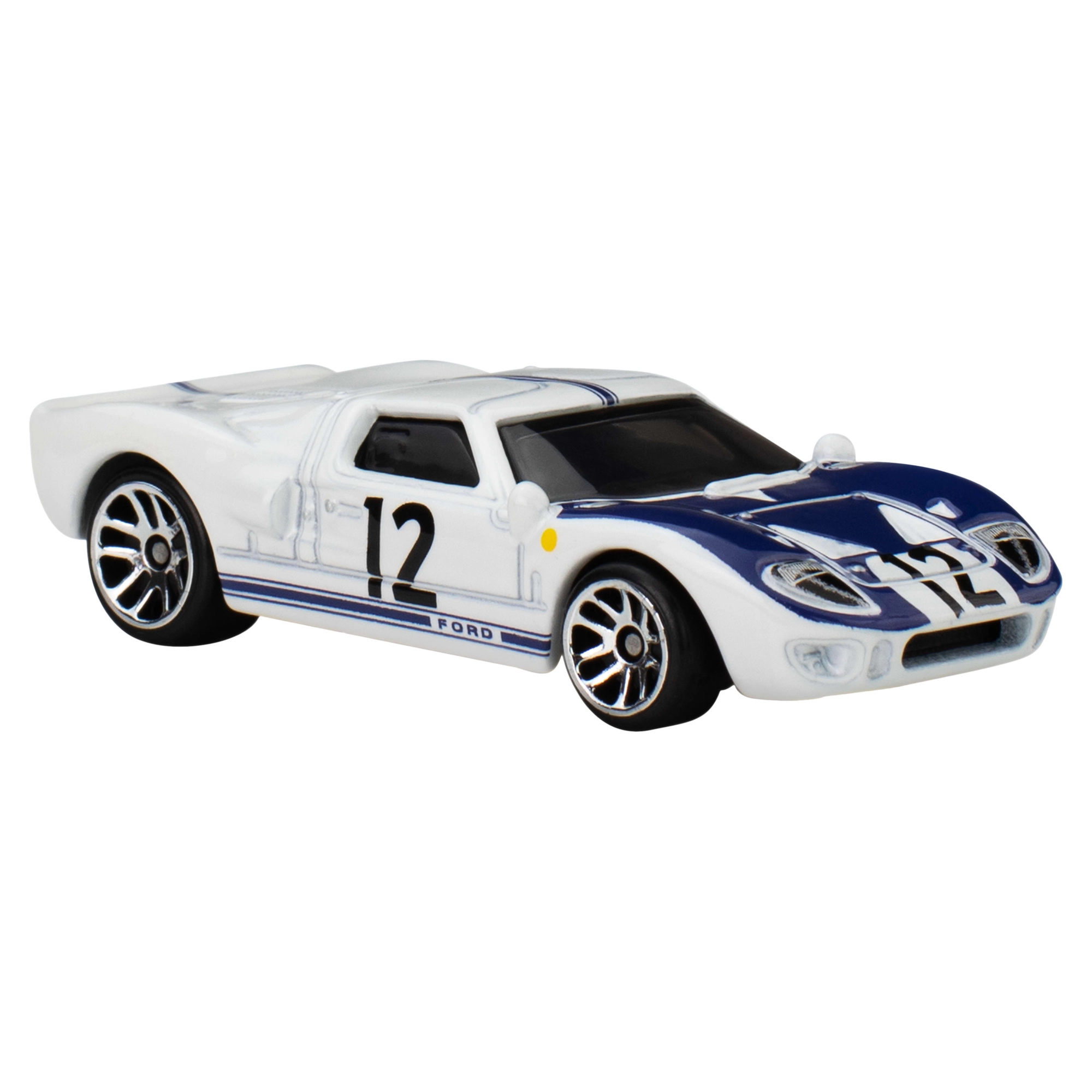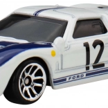 Ikonikus FORD GT40 modell a Hot Wheels Silver Series – National Icons sorozatból, 1:64 méretarányban. Fém karosszéria, élethű részletek, gördülő kerekek, valamint fehér fényezés kék csíkokkal és 12-es rajtszámmal – örömet szerez gyerekeknek és gyűjtőknek egyaránt.