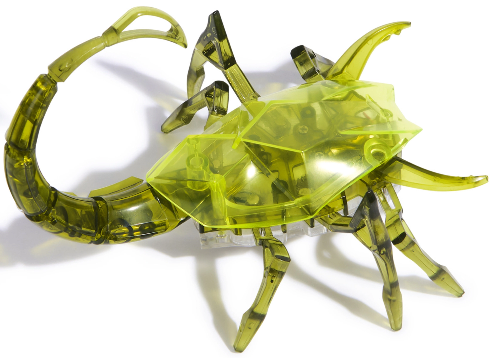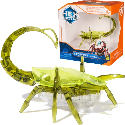 Az áttetsző zöld HEXBOTS skorpió dinamikus akciót visz a gyerekszobába. Az okos rezgő mechanizmusnak köszönhetően fürgén nekilódul, ügyesen irányt vált, nekimegy az akadályoknak és újra elindul – mindezt látványos világító farokkal. A valósághűen formázott lábak és a szegmenses farok fokozzák az élőlény hatását.