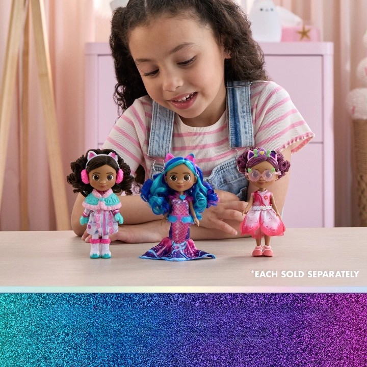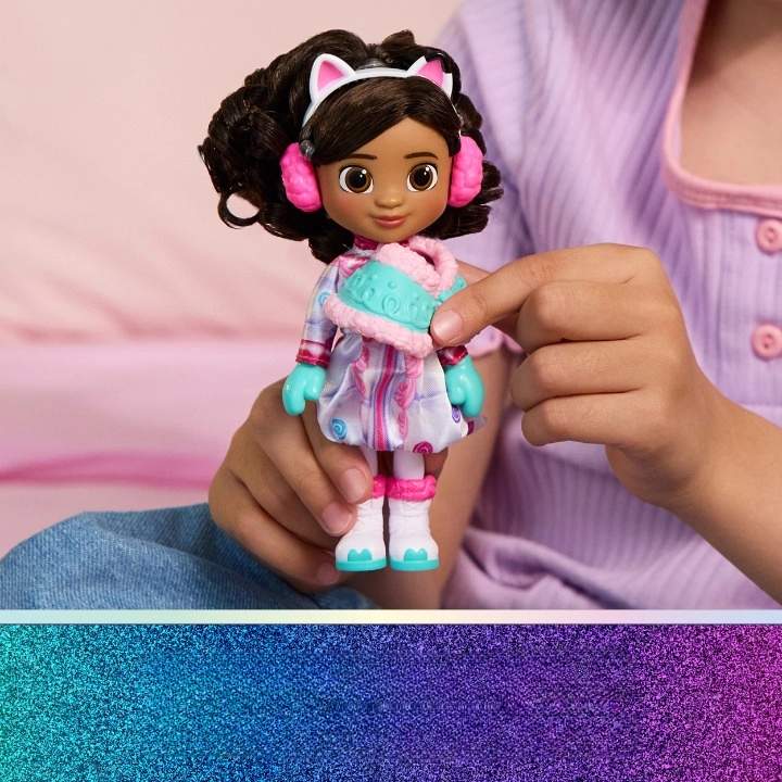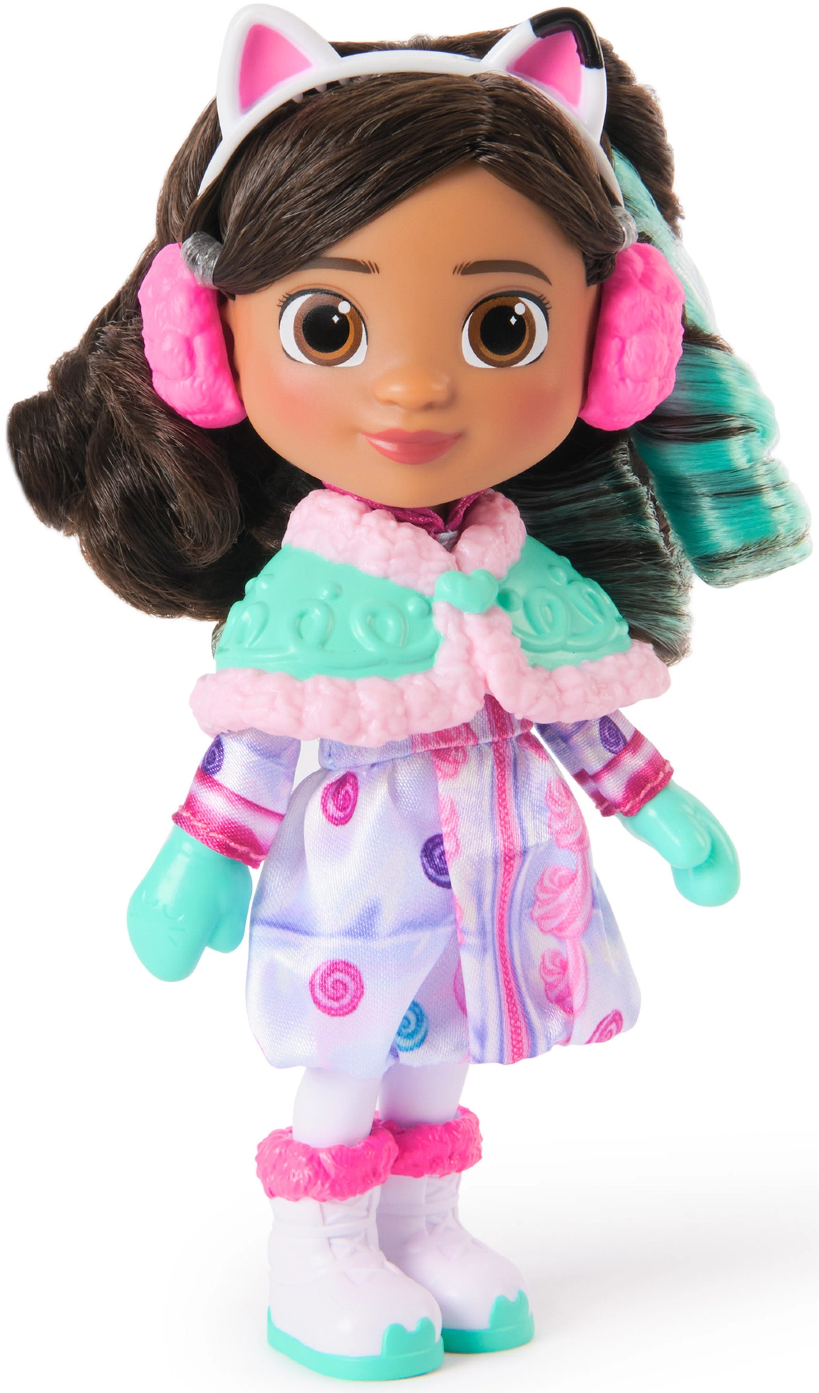 Ez a hivatalosan licencelt baba a népszerű Gabby babaház (Gabby's Dollhouse) sorozat inspirációjával, a Spin Master márkától, hosszú órákra nyújt kreatív játékélményt. Gabby barna göndör hajú, barna szemű, és stílusos szettet visel – hosszú cukorka mintás kabátkát és fehér leggingst, amelyeket a csomagban található téli kiegészítőkkel lehet kombinálni.