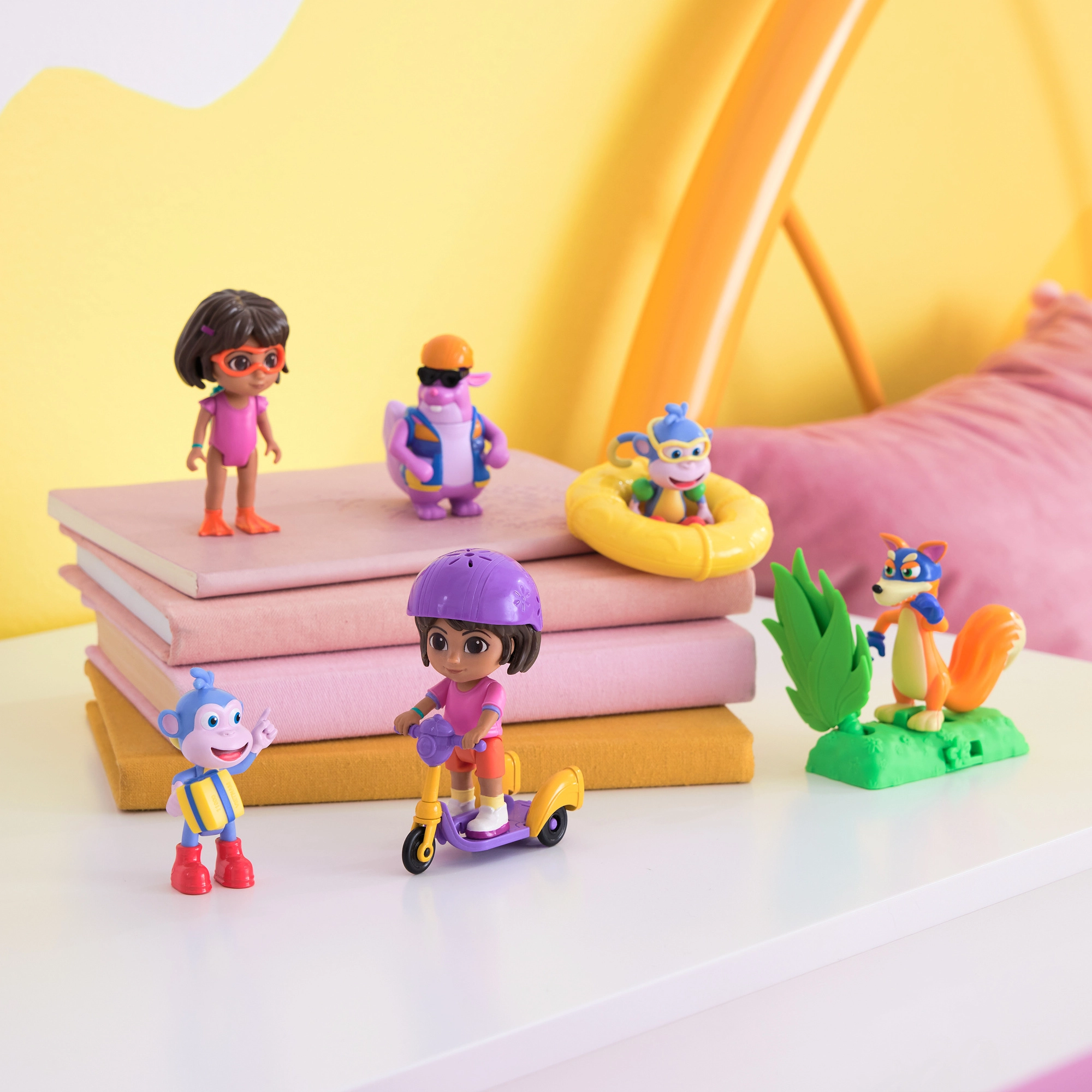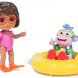 Dóra fürdőruhában és Csizi színes kiegészítőkkel ízületekkel rendelkeznek a könnyű pozícionáláshoz és akciójelenetekhez.