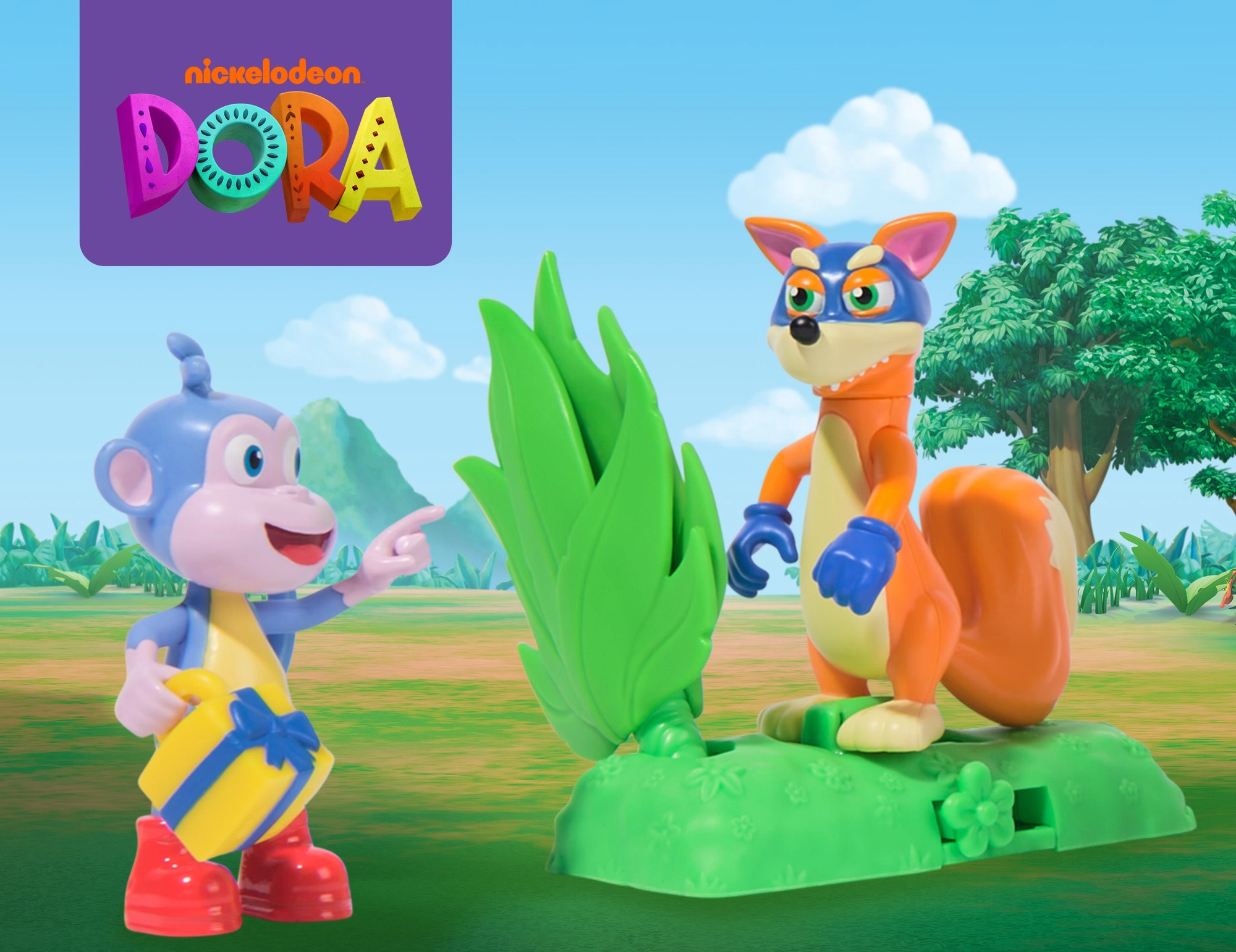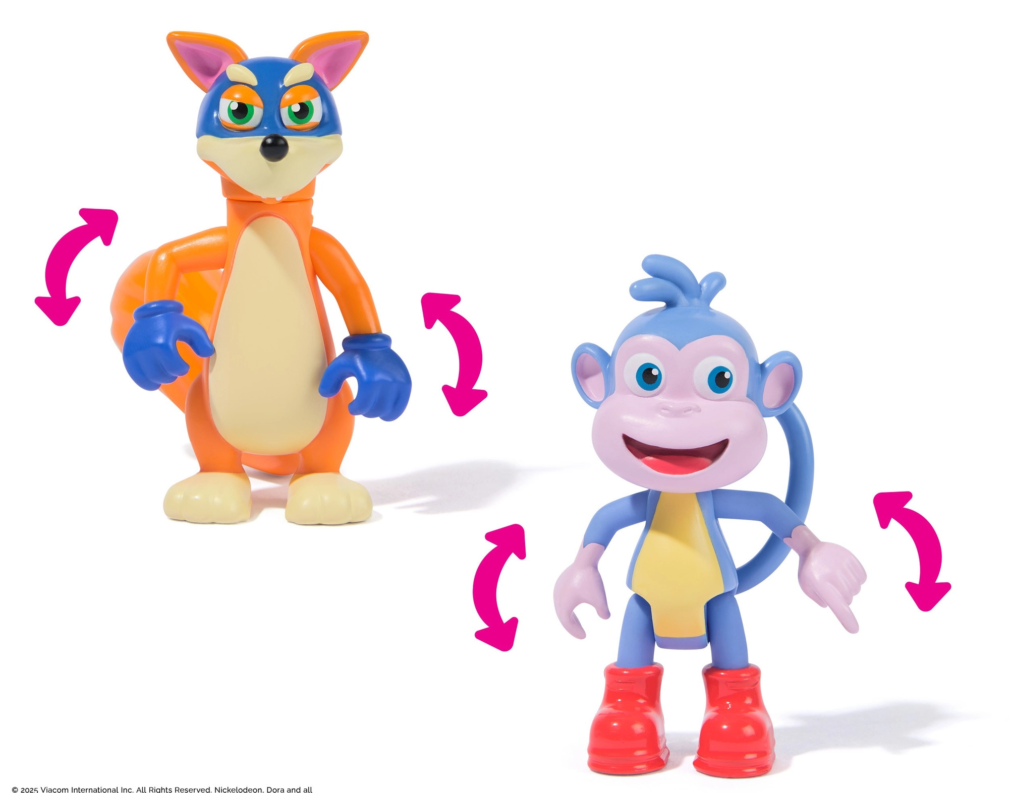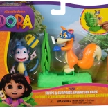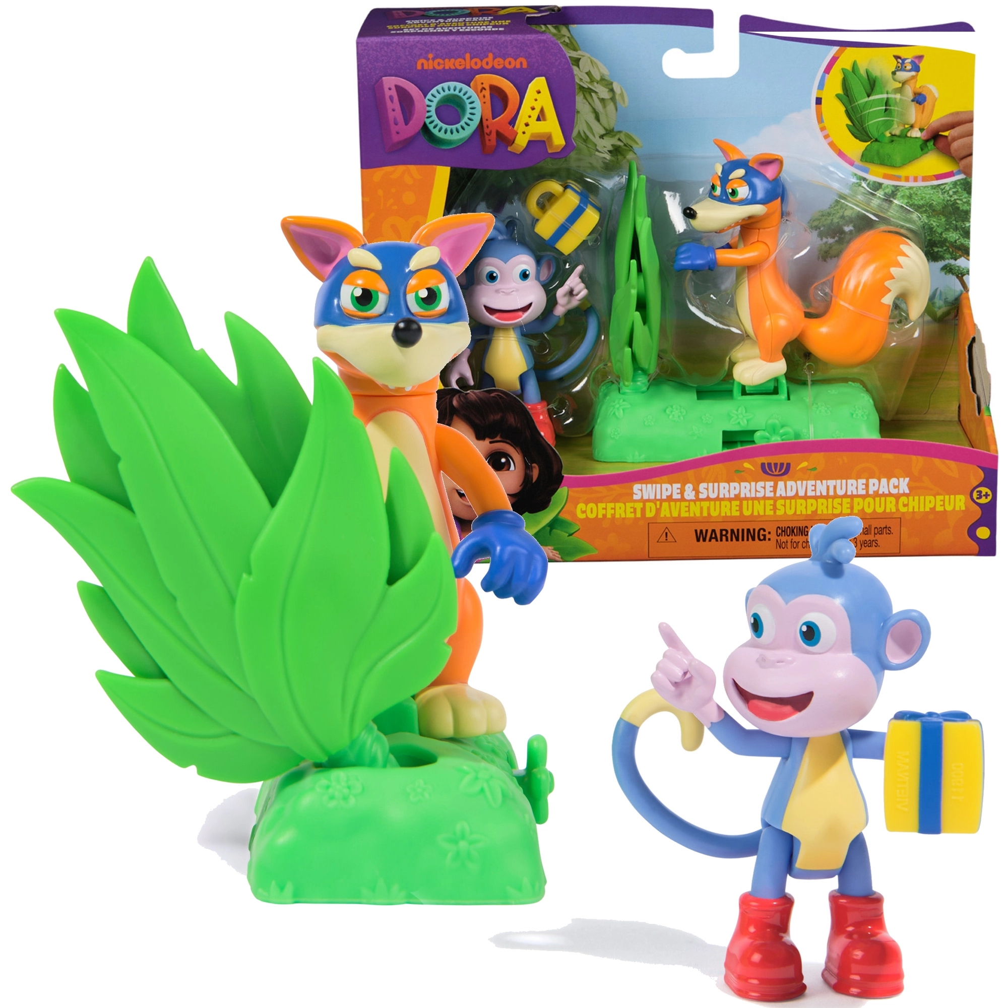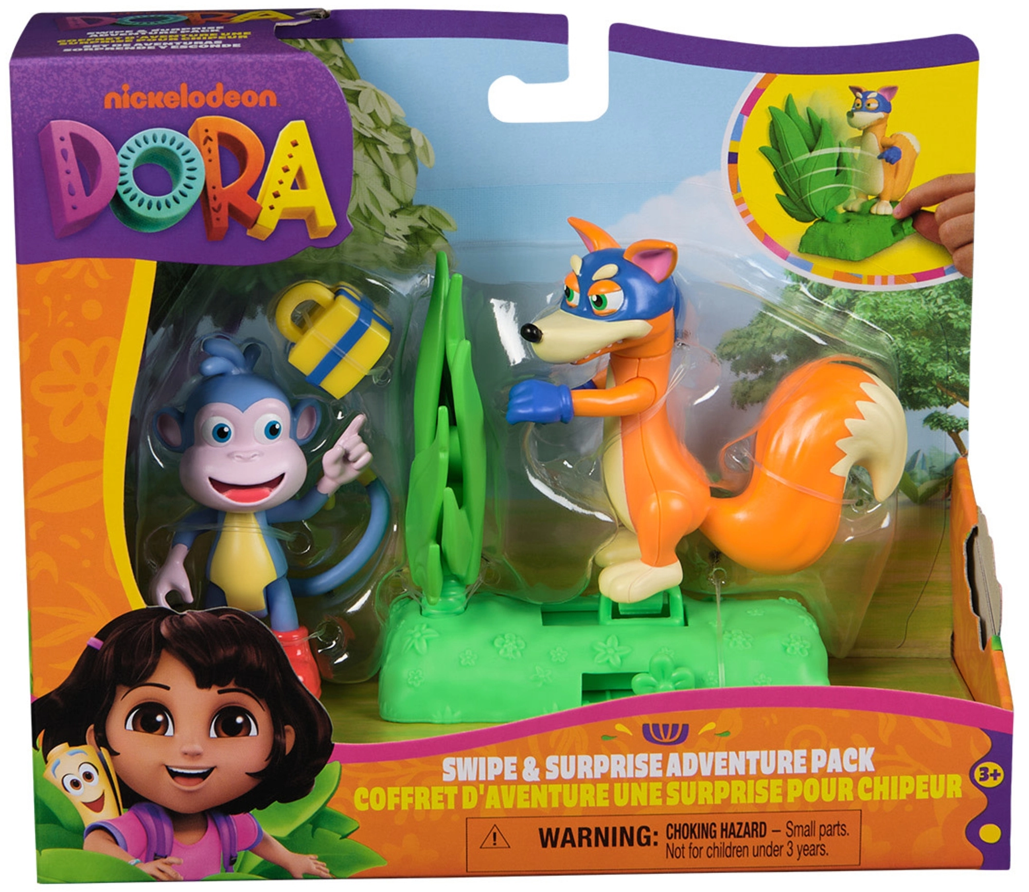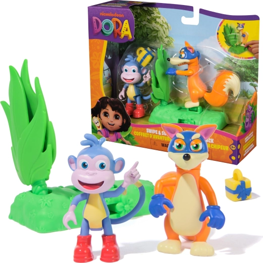 Fedezd fel a DÓRA világának varázsát a Swipe & Surprise játékszettel. Az ikonikus piros cipőt viselő Butek és a ravasz róka, Ravasz Rafi ideális párost alkotnak izgalmas kergetőzésekhez és vidám jelenetekhez. A mozgatható végtagok megkönnyítik a pózolást, és támogatják a finommotorika és a képzelőerő fejlődését.