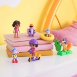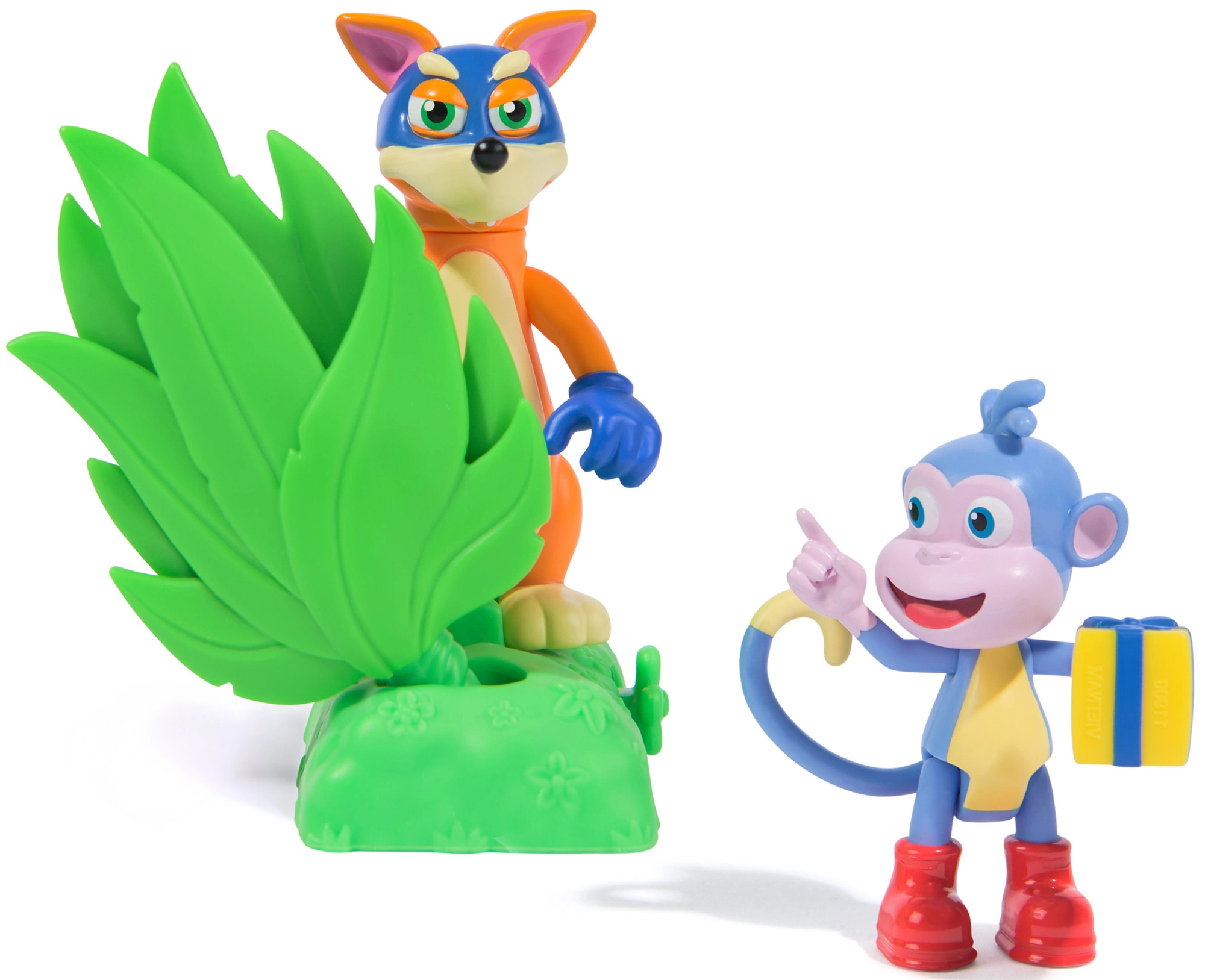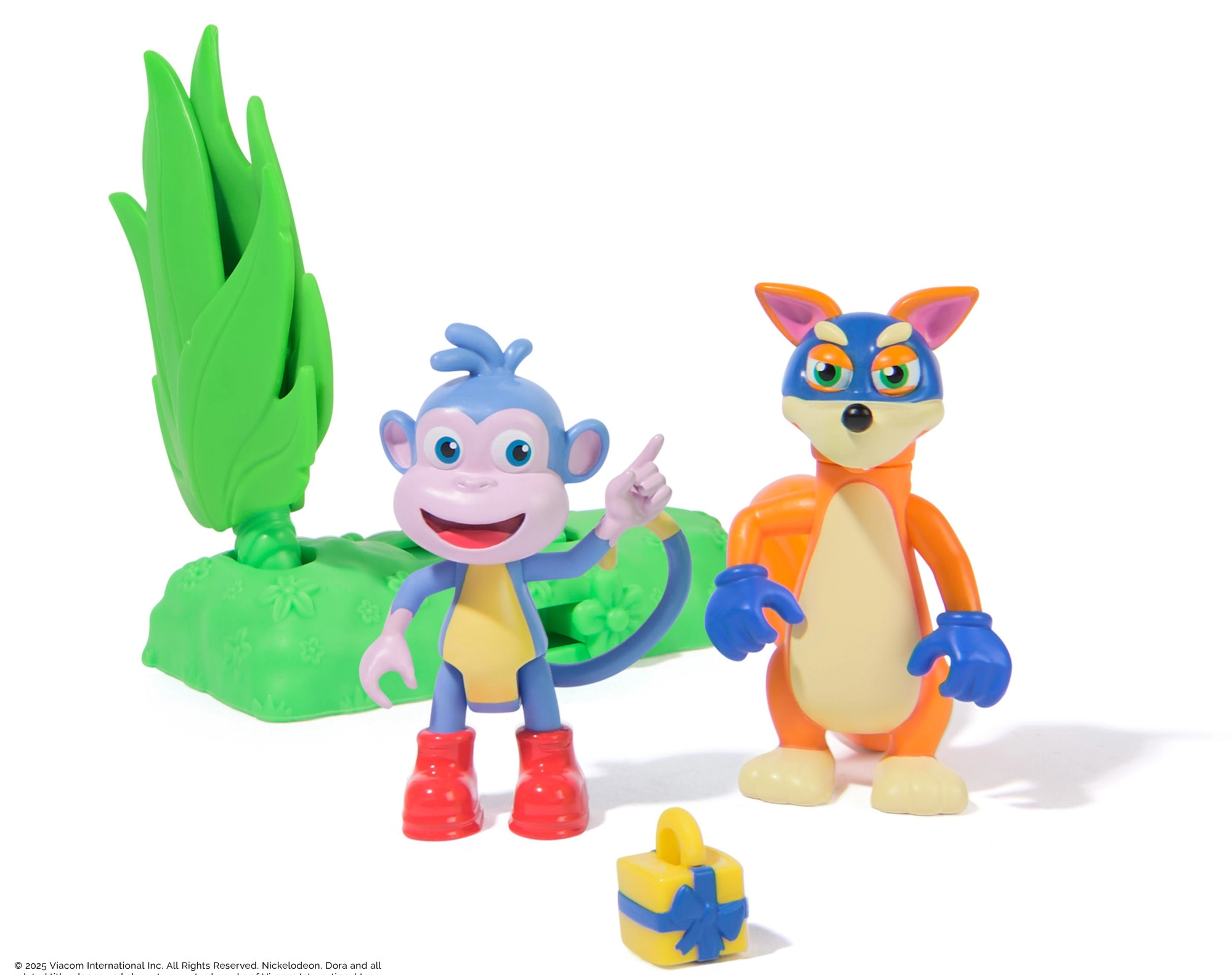 A DÓRA sorozat által ihletett vidám készlet két mozgatható figurát – Butek majmot és a ravasz rókát, Ravasz Rafit – valamint tematikus kiegészítőket kínál a kreatív játékhoz. A gyerekek imádni fogják a mozgatható végtagokat, a levelek mögötti bújócskát és a színes ajándékot, amelyekkel kedvenc jeleneteiket élhetik újra, és saját történeteket alkothatnak.