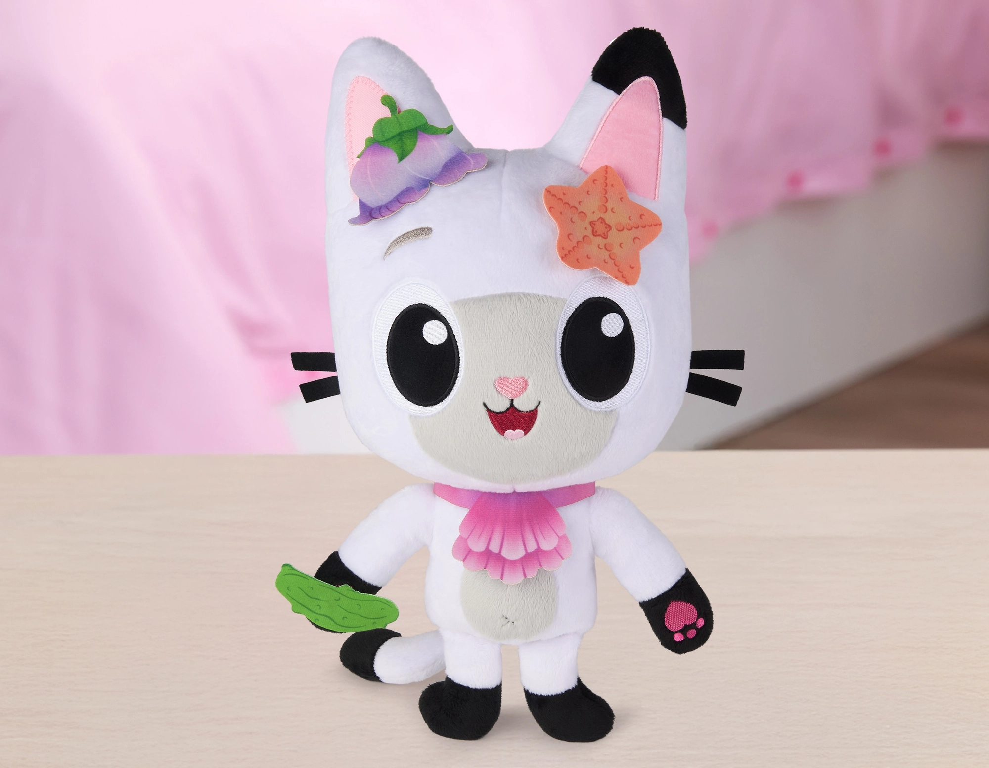 A bájos interaktív cica, a Pandy Paws a népszerű GABBY'S DOLLHOUSE sorozatból minden gyermeket elvarázsol. A puha plüss, a biztonságos hímzett részletek és a kellemes 30 cm-es méret ölelgetésre csábít. A gomb megnyomásával melódiák, kacaj és figurahangok szólalnak meg (nyelvfüggetlenek). Tökéletes játszótárs elalváshoz és utazáshoz is.