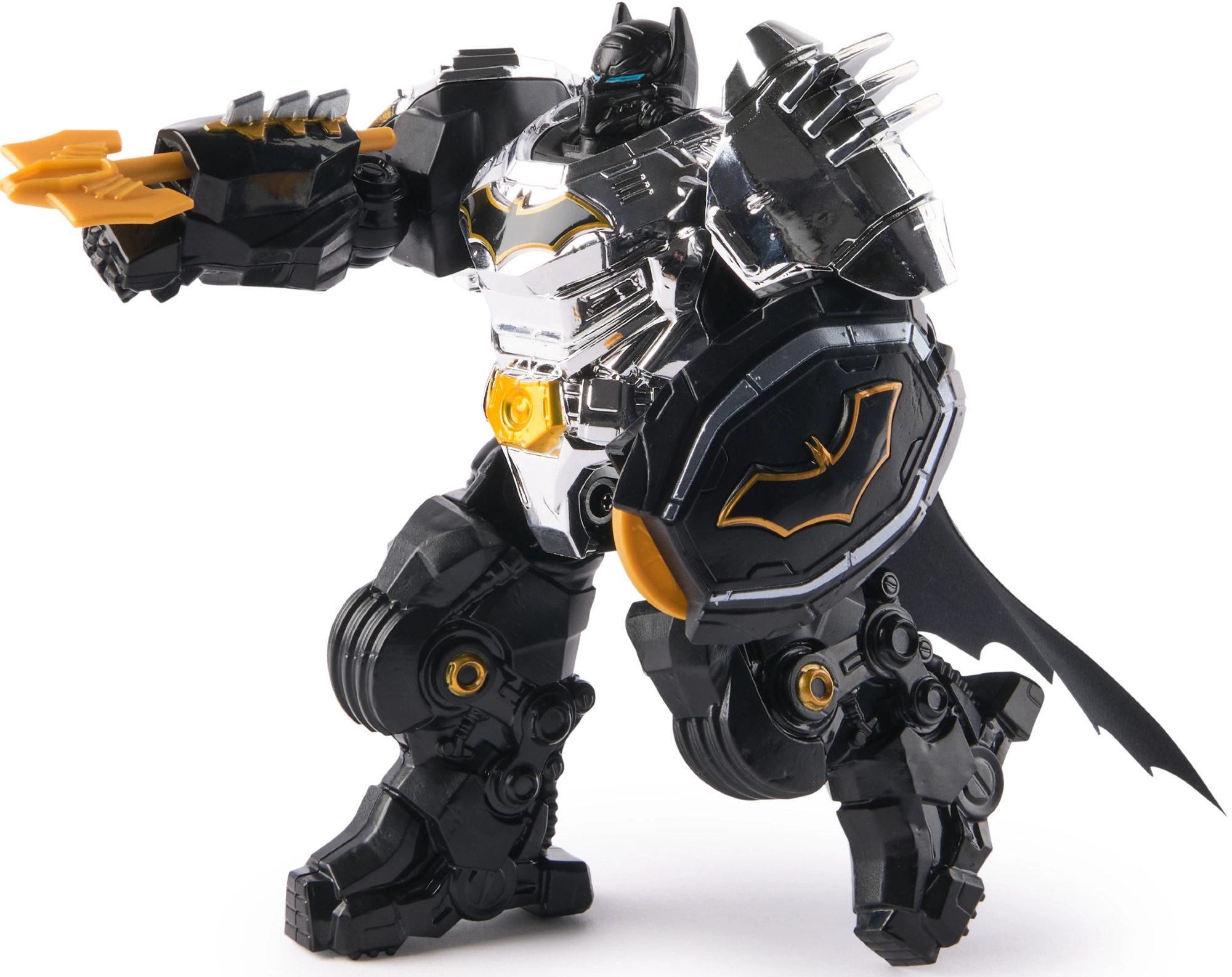 A nagy, páncélozott BATMAN mech pajzzsal és kilövővel izgalmas játékot és látványos pózokat kínál. Tökéletes csatákhoz és kiállításhoz is.